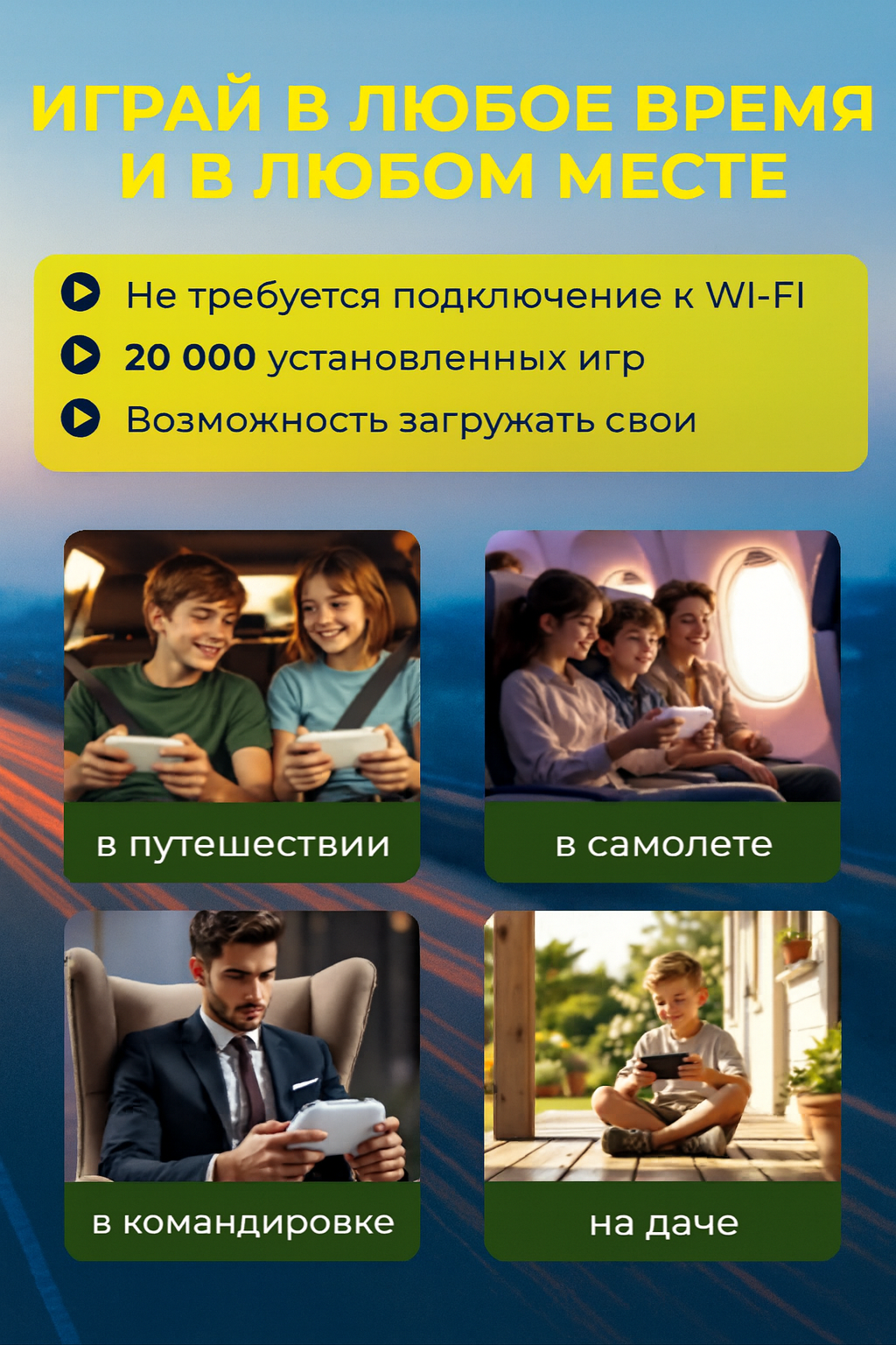 - Путешественникам – играйте в поездах и самолетах без телевизора