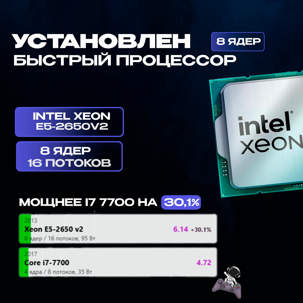 8-ядерный Xeon 2650v2 обеспечивает стабильный FPS в AAA-проектах за счет параллельной обработки задач. В тестах Cyberpunk 2077 процессор держит 45-50 кадров/с на средних настройках благодаря 16 потокам вычислений. Для сравнения, современные Core i5 демонстрируют сопоставимые результаты в мультизадачных сценариях.