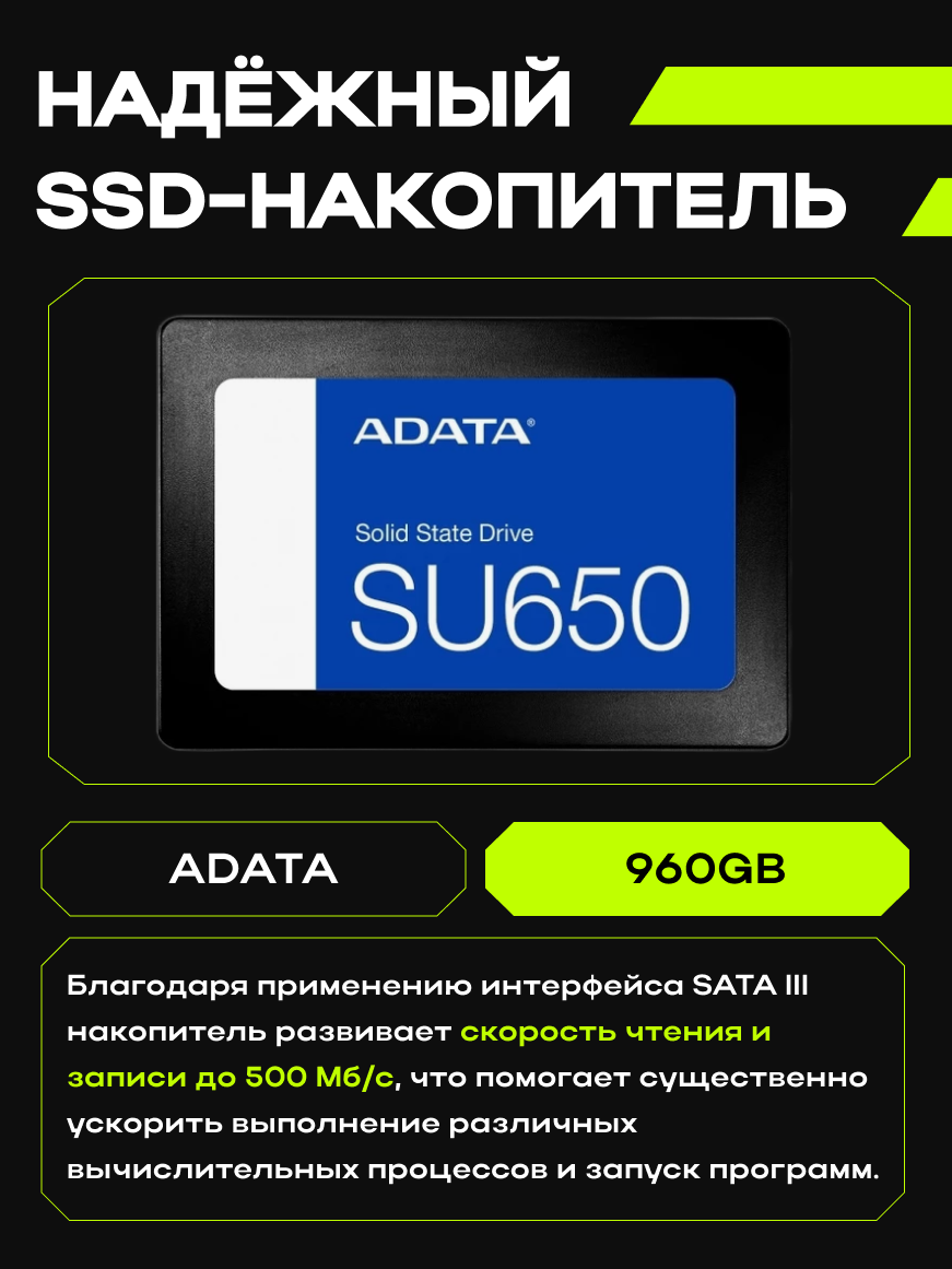 | SSD-накопитель | Kingston NV1 NVMe PCIe 1000GB | 2100/1700 MB/s чтение/запись, 3D TLC NAND |
