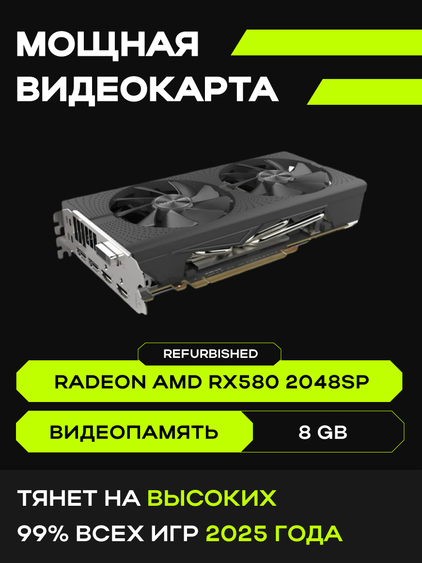 | Видеокарта | AMD Radeon RX580 8GB GDDR5 | 2300MHz частота памяти, 1340MHz GPU Boost |