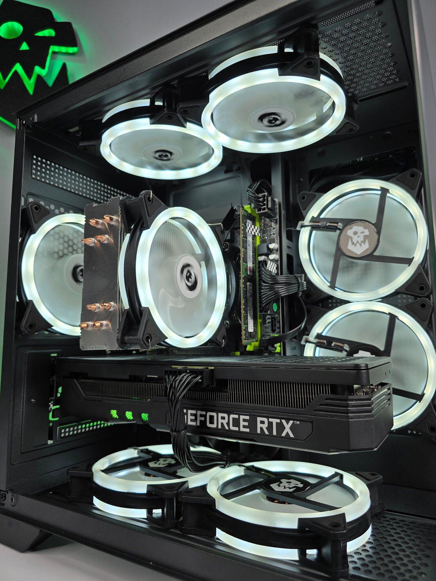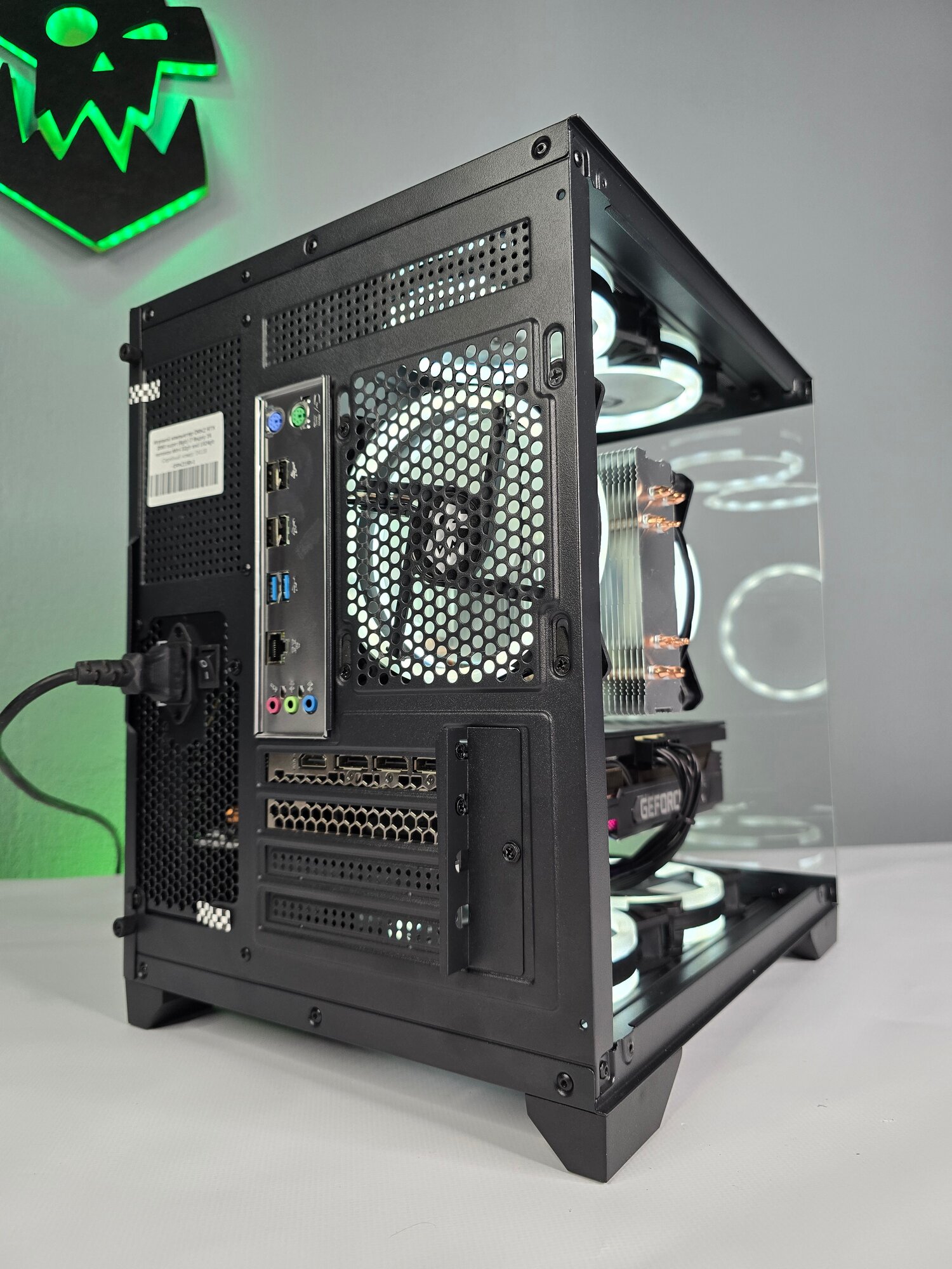 Кейс формата Mid-Tower с магнитным пылевым фильтром упрощает обслуживание. В комплекте кабель DisplayPort 1.4a и переходник USB-C → HDMI 2.1 для VR-шлемов.