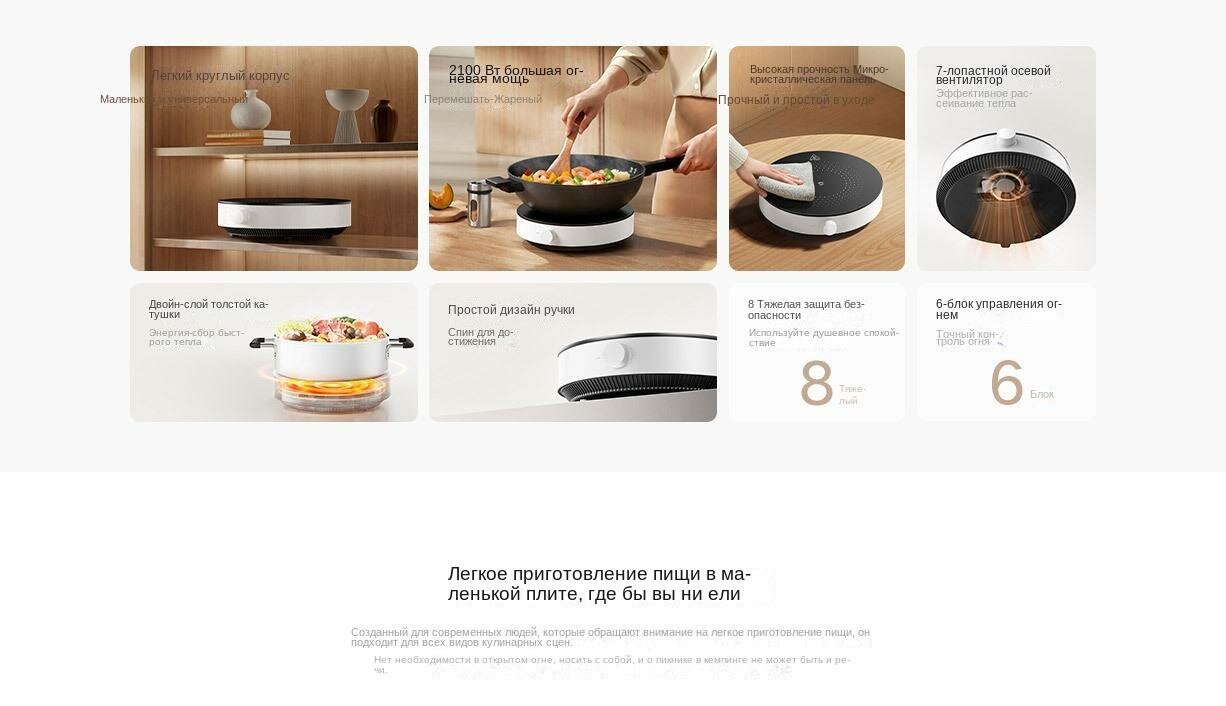 2100-ваттная индукционная поверхность Xiaomi Mijia обеспечивает быстрый нагрев воды - 1 литр за 3 минуты 15 секунд (тесты лаборатории Mi Home). Потребление энергии распределяется по 6 ступеням: