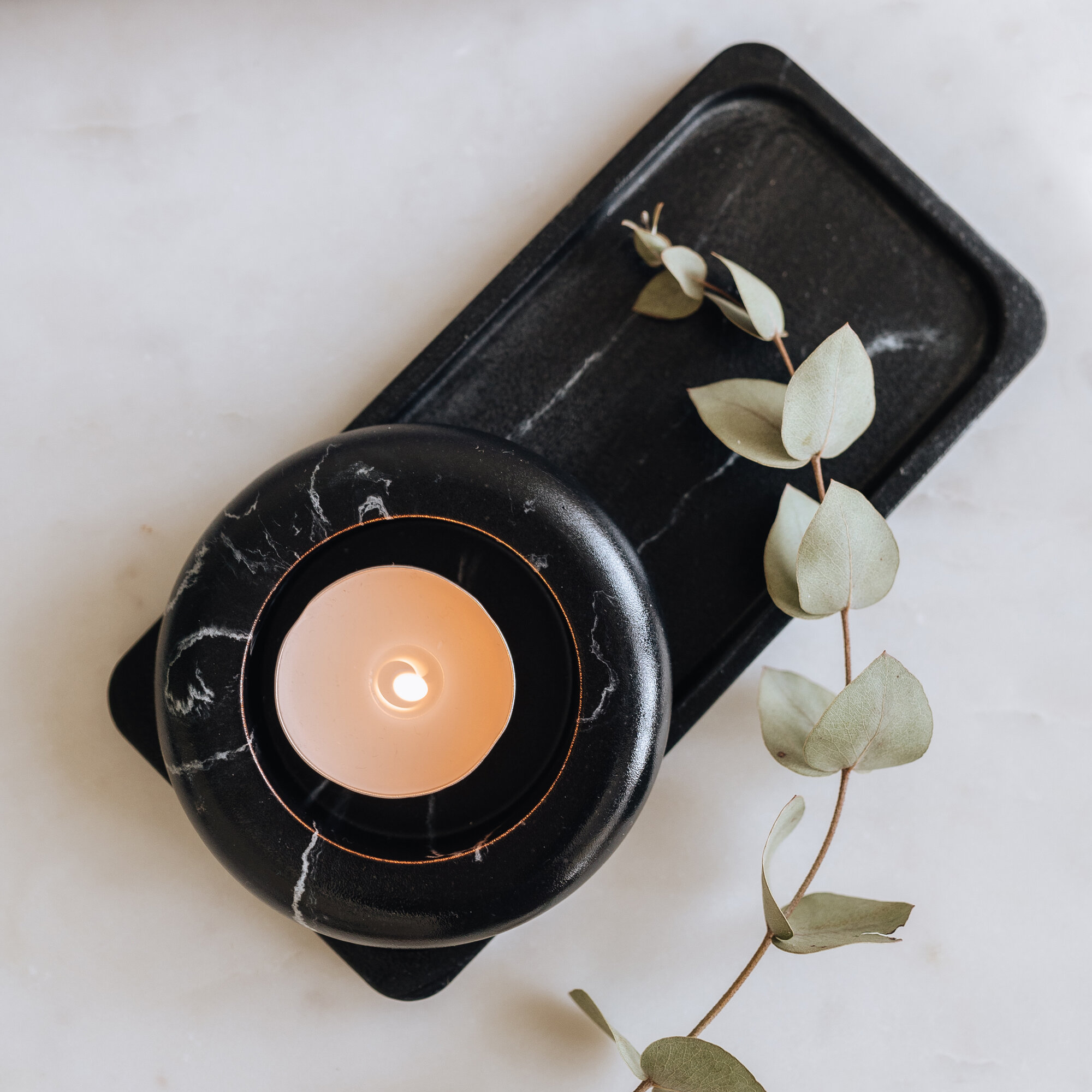 - Равномерное нанесение мраморного узора с плавными переходами от тёмно-серого к чёрному