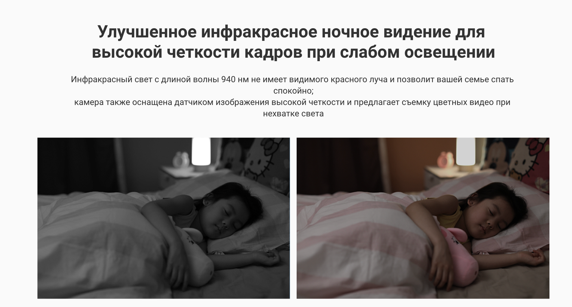 Инфракрасная подсветка с дальностью 10 метров активируется автоматически при освещении ниже 3 lux, переключая камеру в ночной режим ч/б изображения. Встроенный микрофон и динамик поддерживают двухстороннюю связь с задержкой 0.3 сек - функция полезна для дистанционного общения с членами семьи или предупреждения злоумышленников.