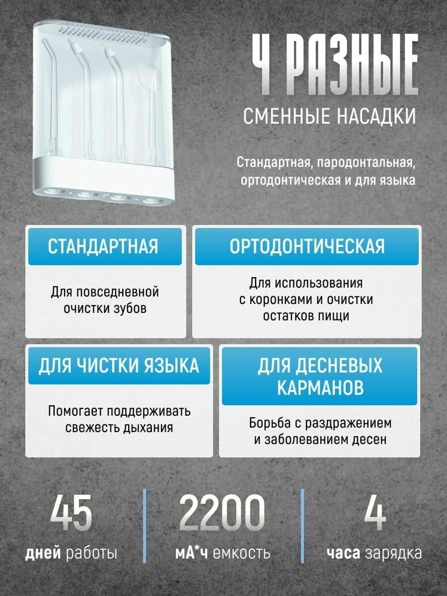 - Пульсирующий поток 1800/мин удаляет налет на 25% эффективнее зубной нити (исследование Journal of Clinical Dentistry)