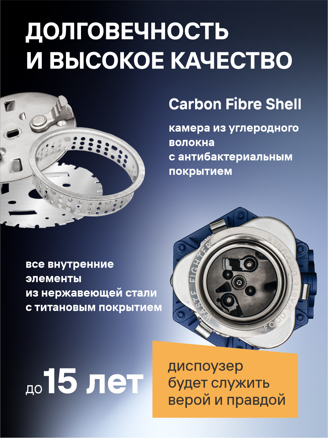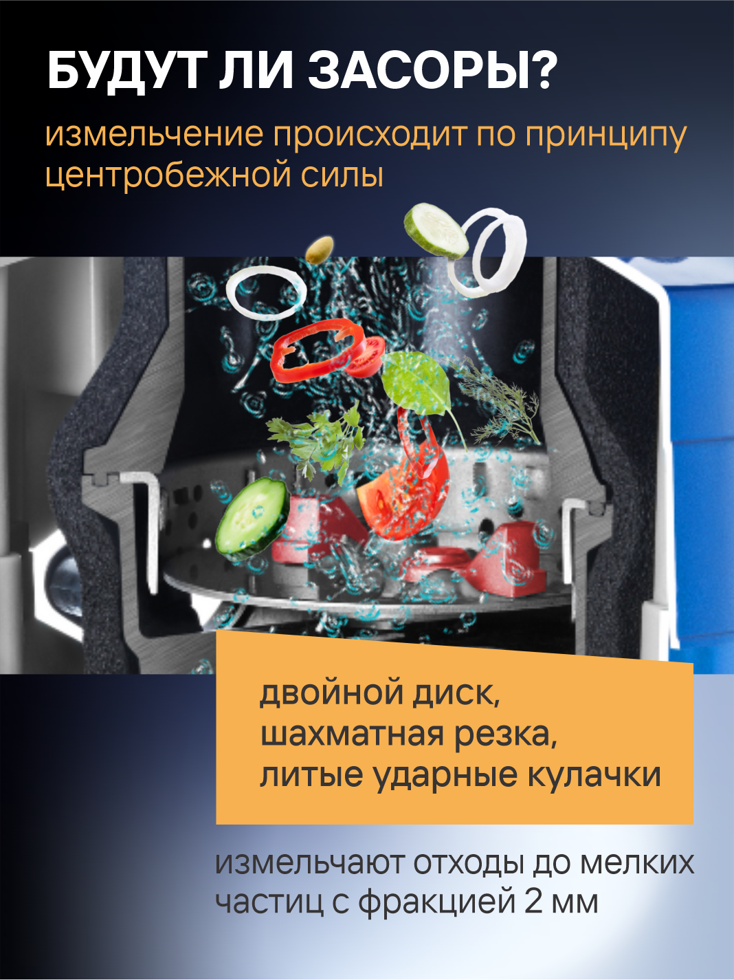 Двигатель мощностью 4800 об/мин обеспечивает моментальную переработку любых пищевых отходов: