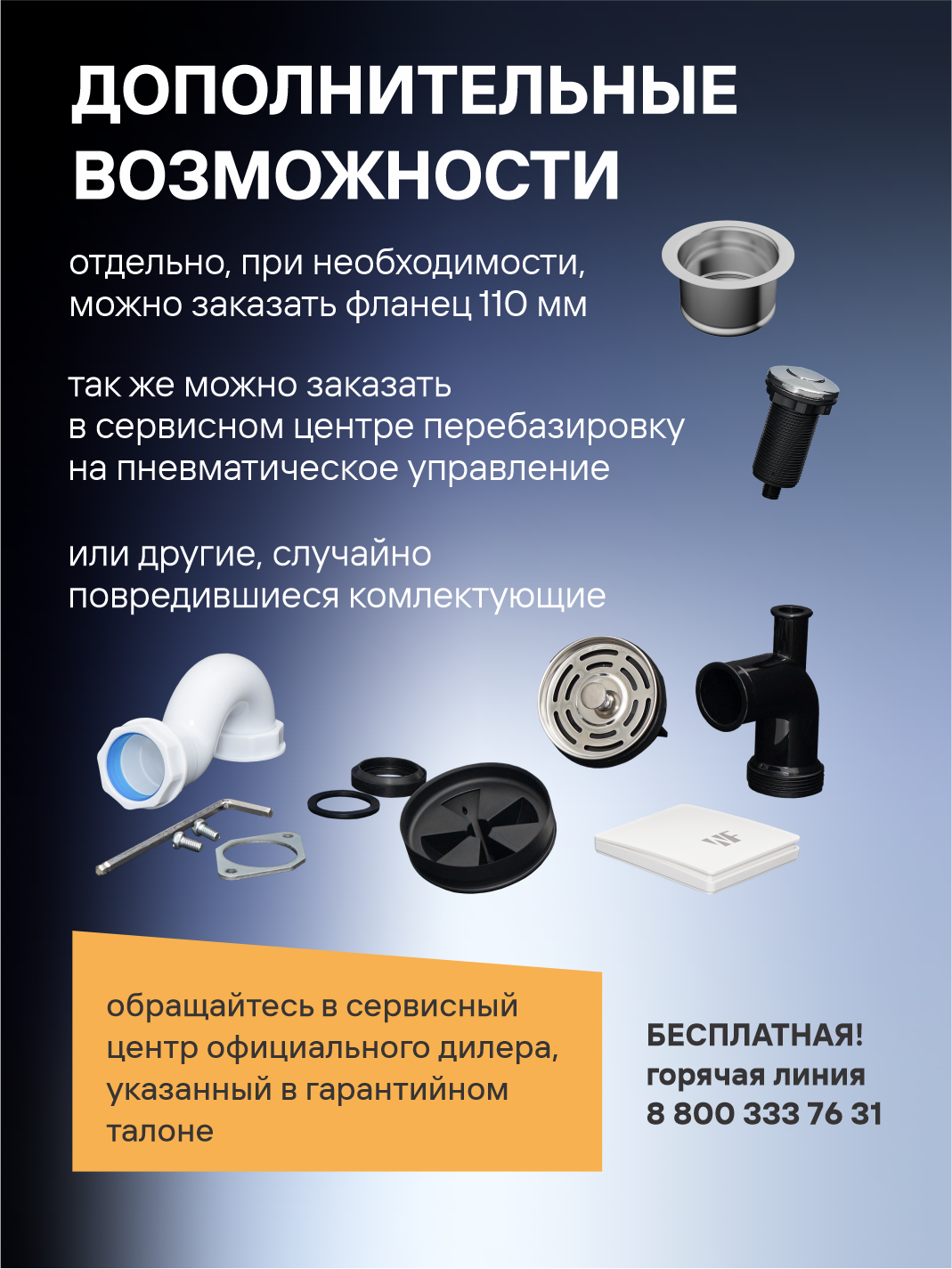 - Замену изношенных комплектующих на 3-й год эксплуатации