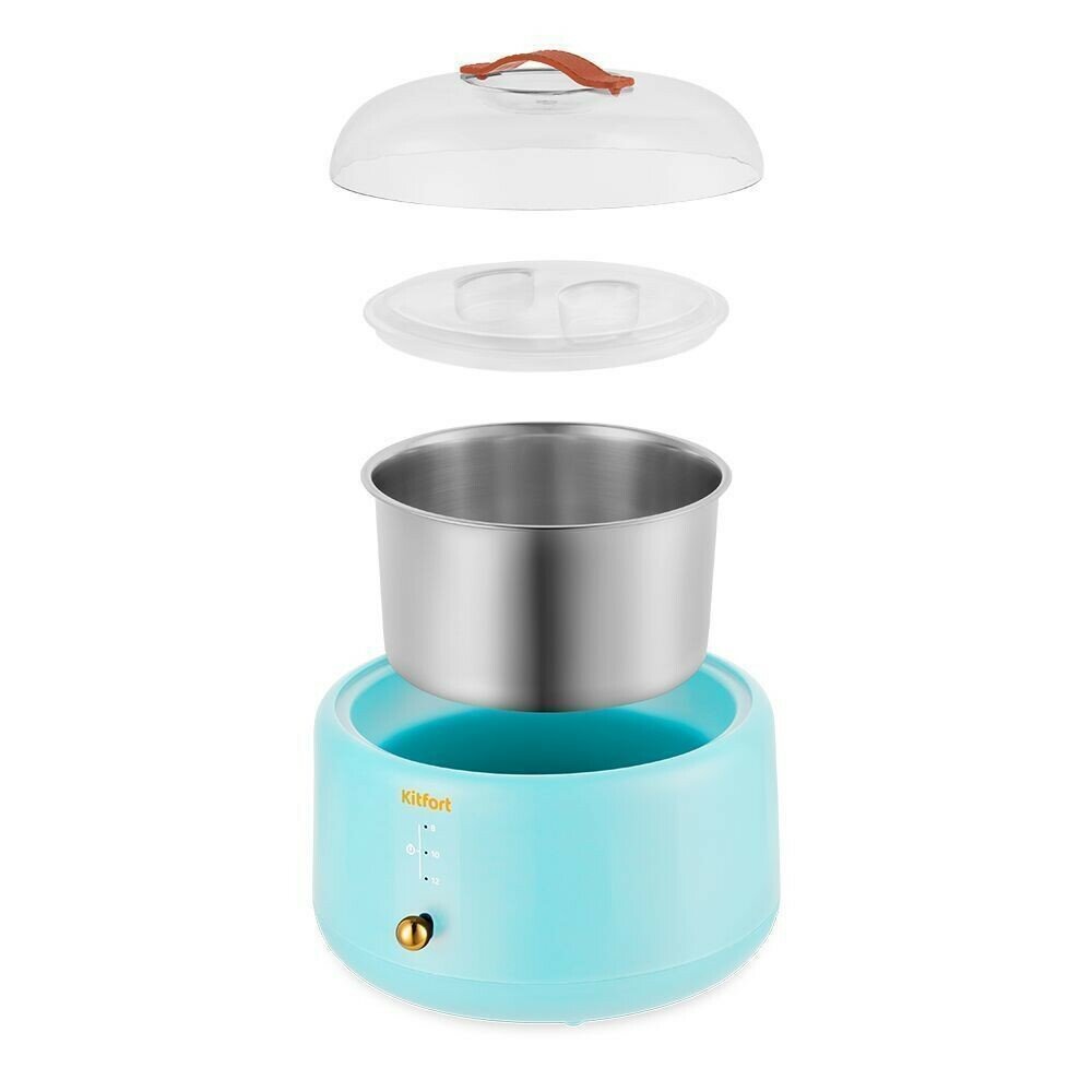 Неоднородная консистенция продукта возникает при несоблюдении пропорций закваски: для йогуртницы Kitfort КТ-6081-1 рекомендуется 1 пакетик на 600-700 мл молока жирностью 3,2-6%. Прозрачная крышка позволяет контролировать процесс створаживания без прерывания работы.