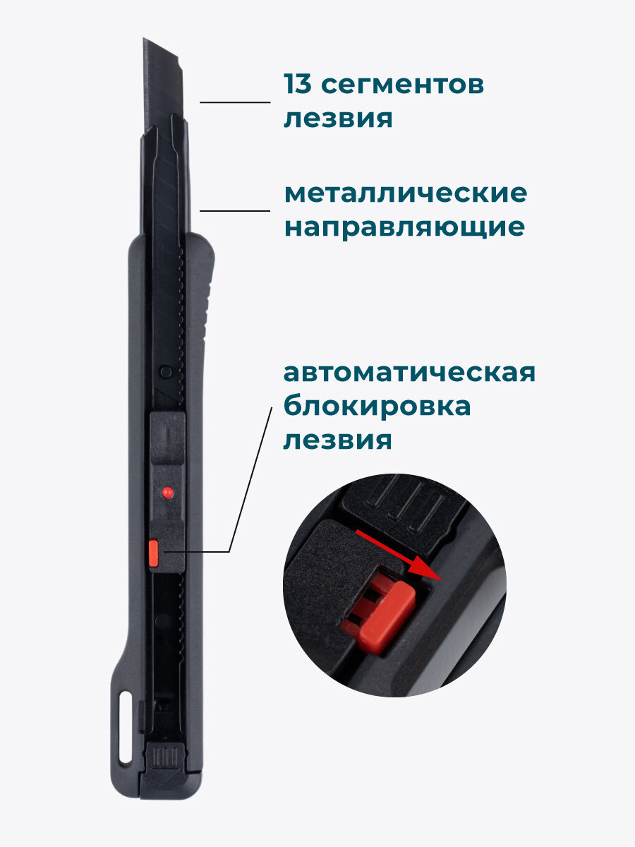 Выдвижной механизм 9 мм лезвия позволяет резать: