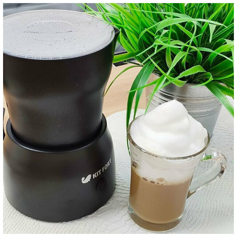 Капучинатор Kitfort КТ-710 создаёт плотную пенку за 90 секунд благодаря электромеханической системе мощностью 400 Вт. Вместительный резервуар на 730 мл позволяет готовить 2-3 порции капучино без долива молока. Комбинированный корпус из металла и пищевого пластика выдерживает нагрев до 70°C без деформации.