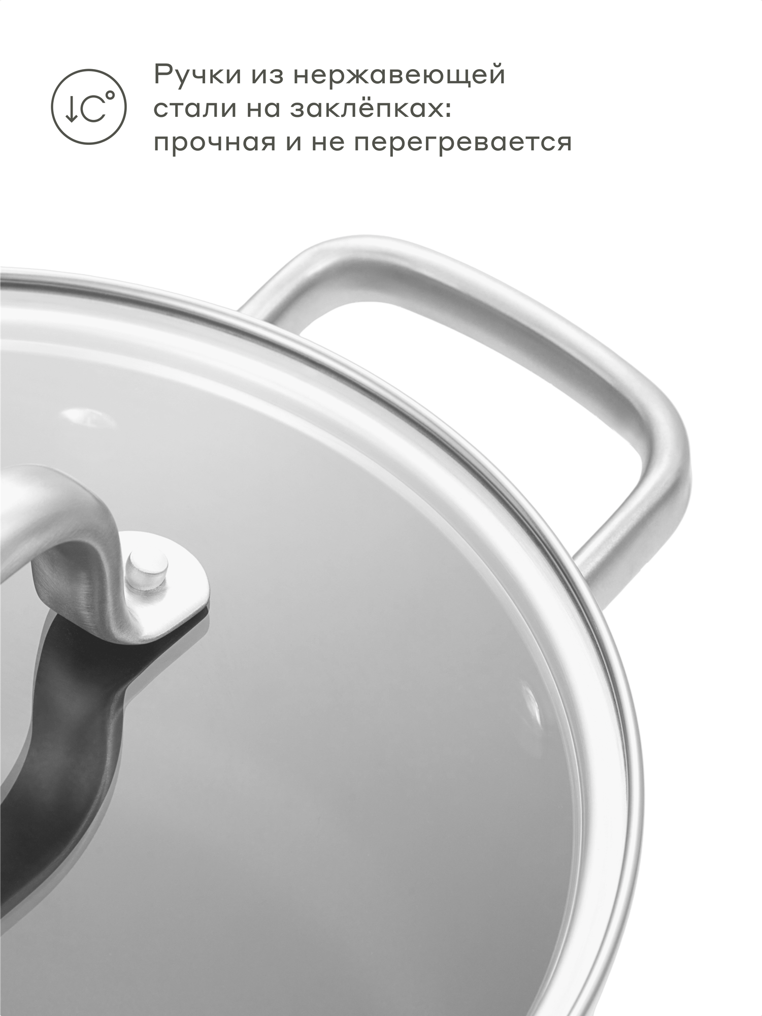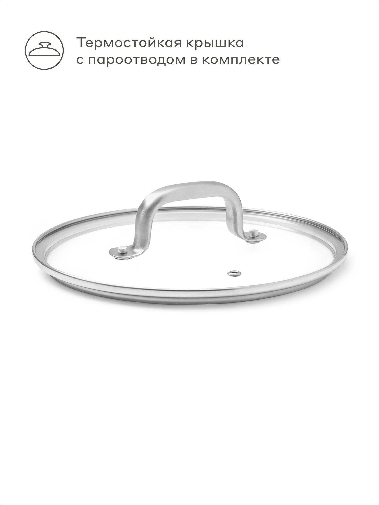 Картонная коробка с двойными стенками и пенопластовыми вставками защищает изделие при перевозке. Вес в упаковке – 2.8 кг. Габариты для доставки: 28×28×20 см. Комплектация: кастрюля, стеклянная крышка с металлическим ободом, гарантийный талон.