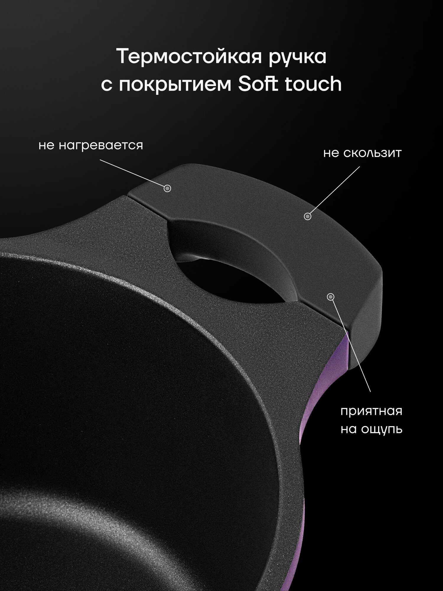 - Ручки из термостойкого пластика нагреваются до 50°С при кипячении воды в течение 30 минут
