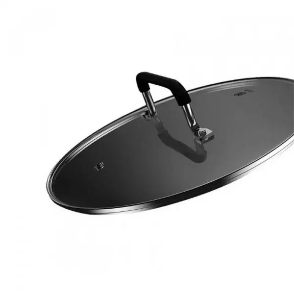 Стеклянная крышка с паровыпускным клапаном обеспечивает контроль приготовления: поликарбонатная вставка выдерживает 190°C. Герметичность 98% по стандарту ГОСТ 24888-2017 сохраняет влагу при тушении - сокращает время приготовления мяса на 15-20%.