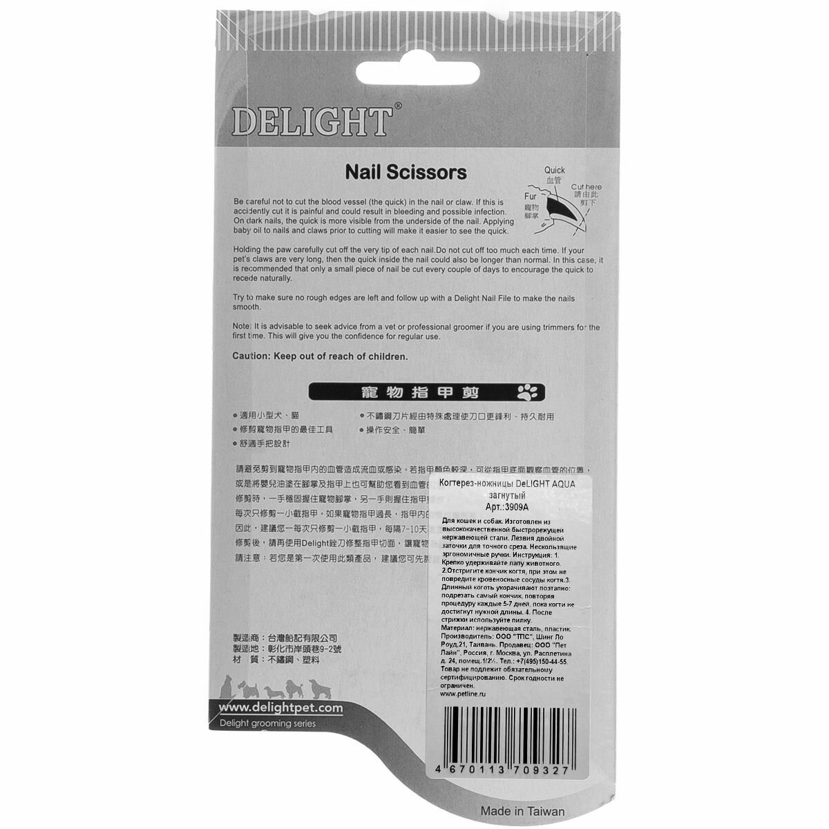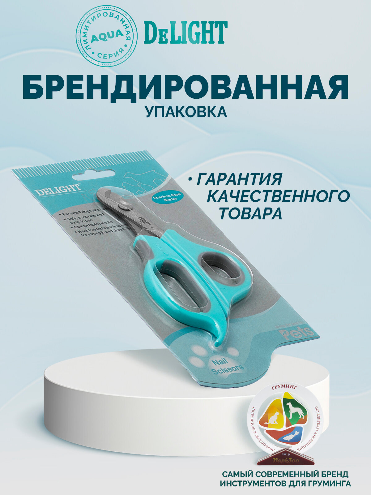 Когтерез-ножницы DeLIGHT AQUA размера L (код 3909A) предназначен для владельцев собак средних пород (весом 15-30 кг) и крупных кошек. Изогнутые лезвия из высокоуглеродистой стали со специальной заточкой предотвращают расслаивание когтей. Литой упор фиксирует лапу животного в правильном положении, исключая случайные травмы при стрижке активных питомцев.