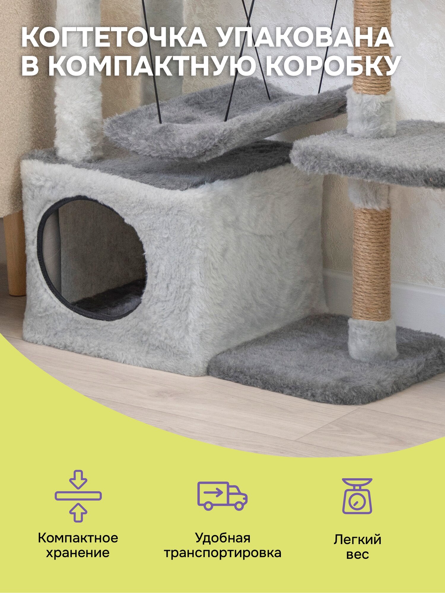 Трёхъярусная когтеточка PetTails Marcello сочетает вертикальную стойку для точки когтей с зоной отдыха. Напольная конструкция размером 33×76×105 см включает: