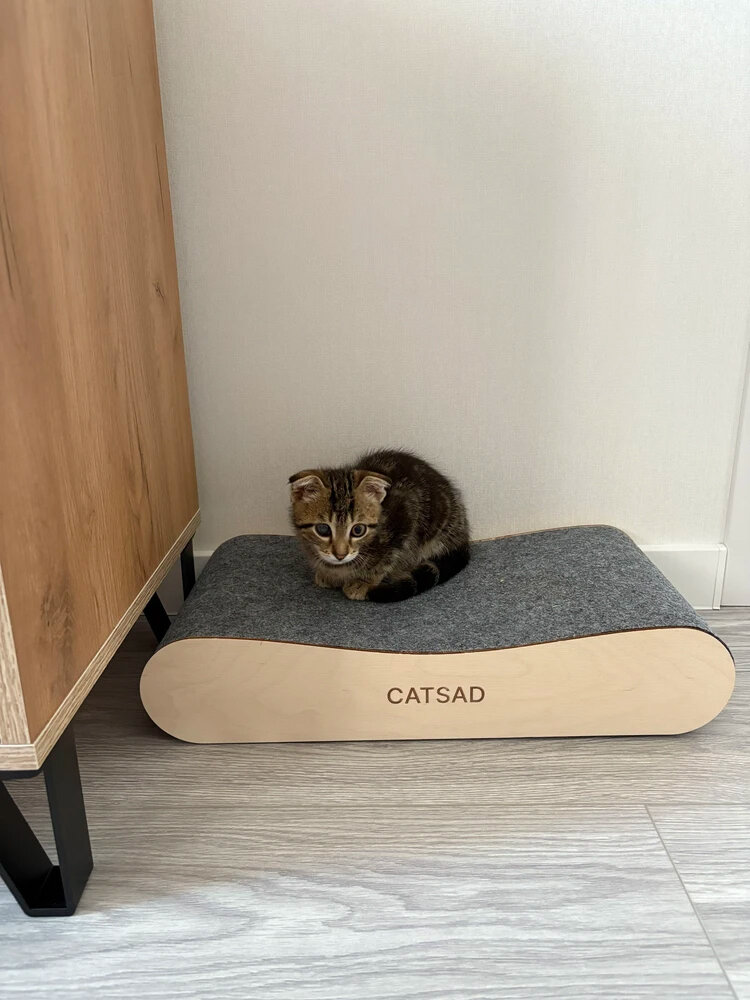 Комбинированная когтеточка-лежанка для кошек CATSAD решает две главные проблемы владельцев: экономия места и борьба с картонными аналогами. Ковролин повышенной плотности выдерживает когти мейн-кунов, сохраняя первоначальный вид минимум 12 месяцев. Габариты платформы 50x70 см подходят кошкам до 10 кг благодаря деревянному основанию со стабилизирующими ножками.