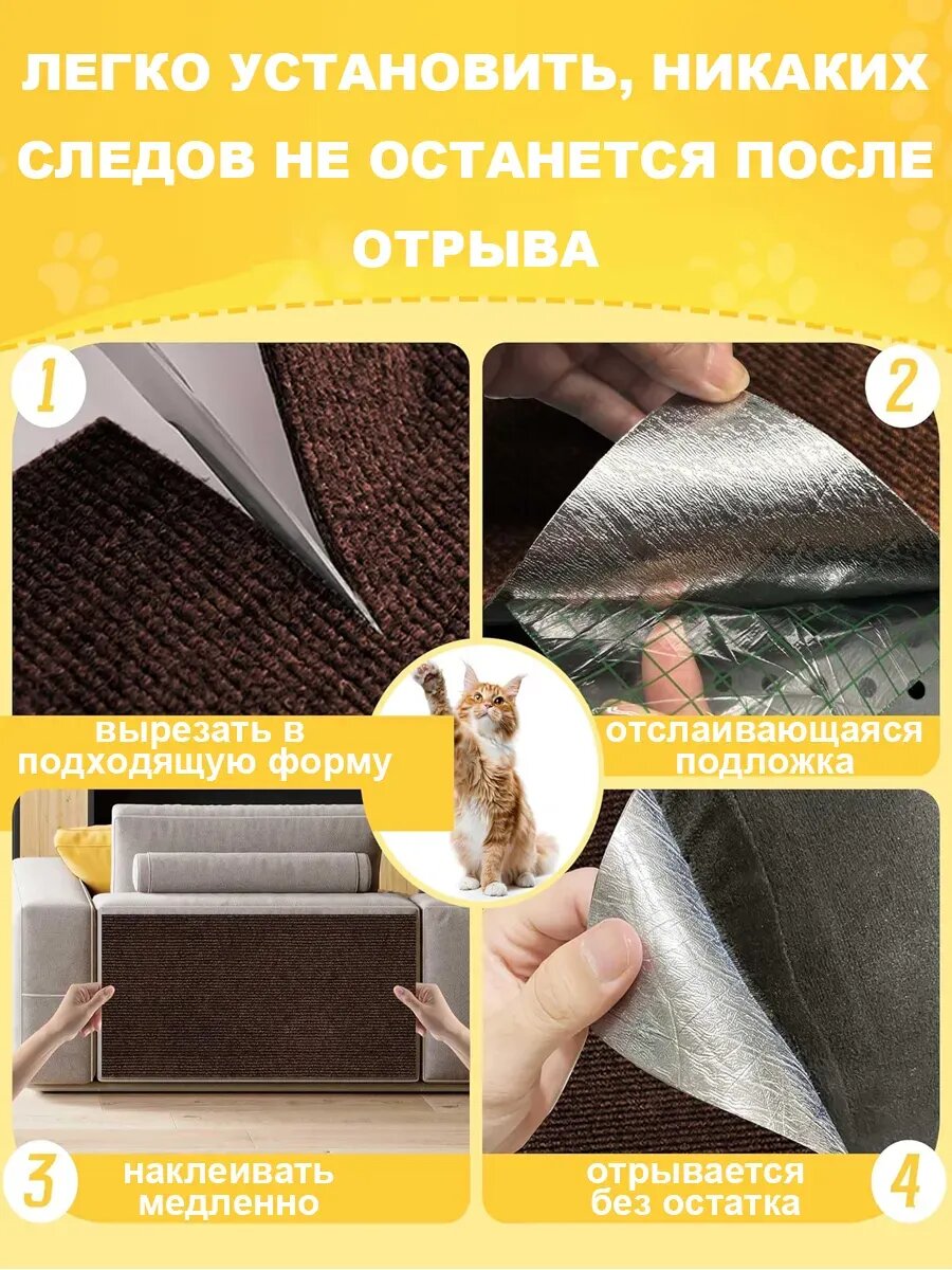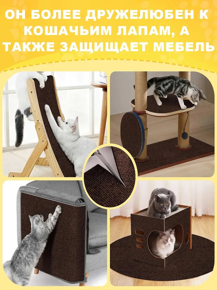 Самоклеящееся покрытие 100x60 см решает 3 ключевые проблемы владельцев кошек. Толщина 8 мм позволяет равномерно распределять нагрузку при активных царапающих движениях. Материал сочетает премиальный натуральный сизаль и армированный ПВХ с антистатической пропиткой — это подтверждают экспертные тесты PetProduct Research (2024):