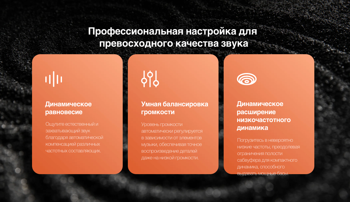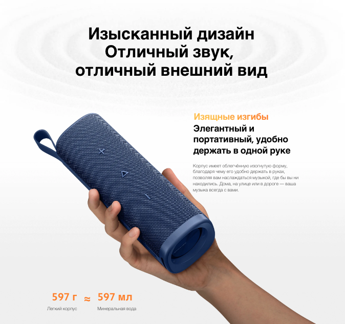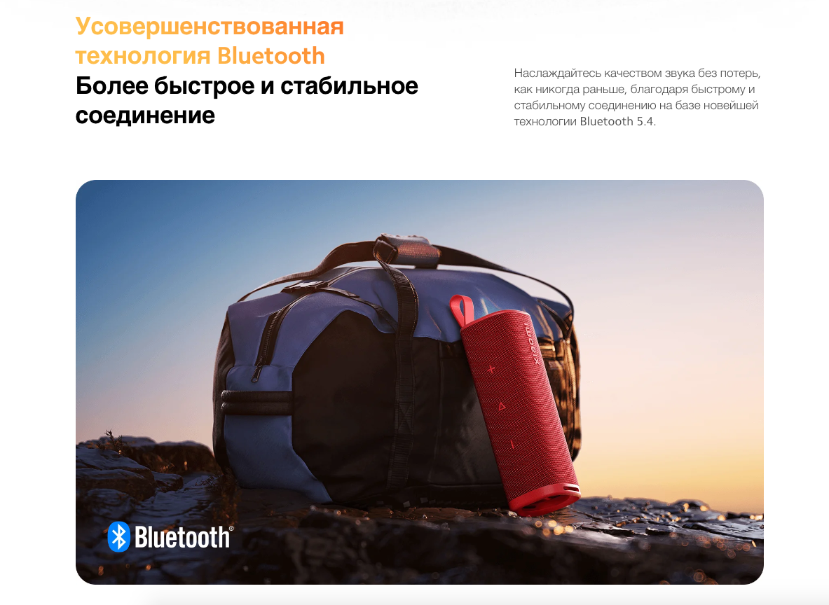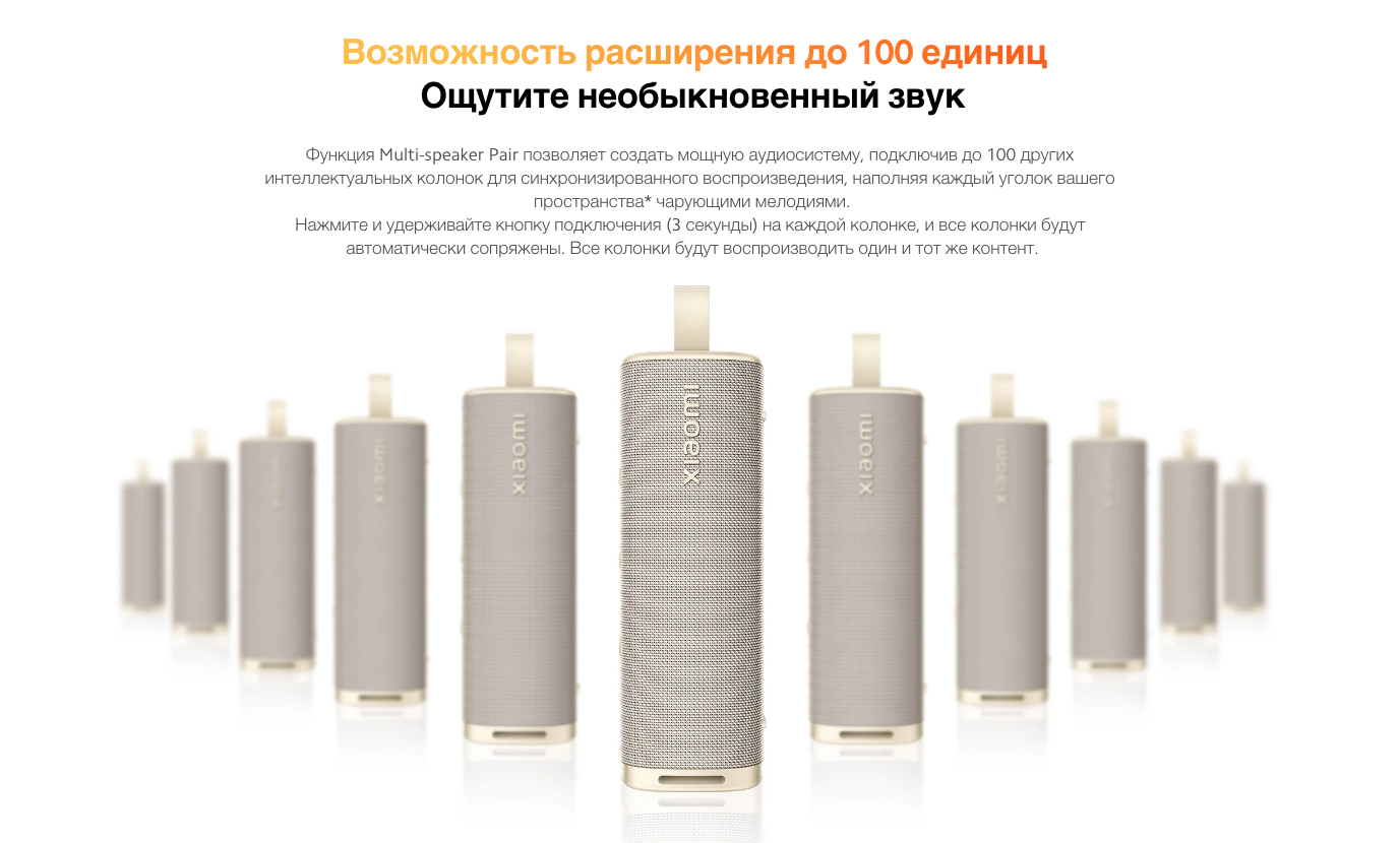 Стереозвук Xiaomi Sound Outdoor создает эффект присутствия благодаря двойным динамикам с суммарной мощностью 30Вт RMS. Технология Bass Enhancement усиливает низкие частоты для танцевальных треков.