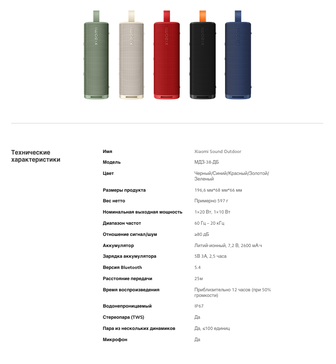 - JBL Flip 6 - одинаковый уровень IPX5, но ниже громкость 20Вт против 30Вт у Xiaomi