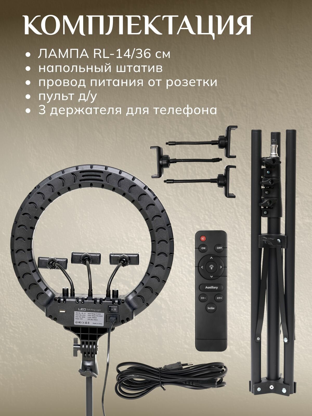 В отличие от аналога Neewer RL-14 с пластиковым держателем смартфона, модель FOTO LAMPA оснащена алюминиевыми кронштейнами с резиновыми накладками для фиксации устройств весом до 500 г. Сравнение с конкурентом Godox LR-32 показывает преимущество в количестве светодиодов (+48 элементов) при более компактном корпусе.