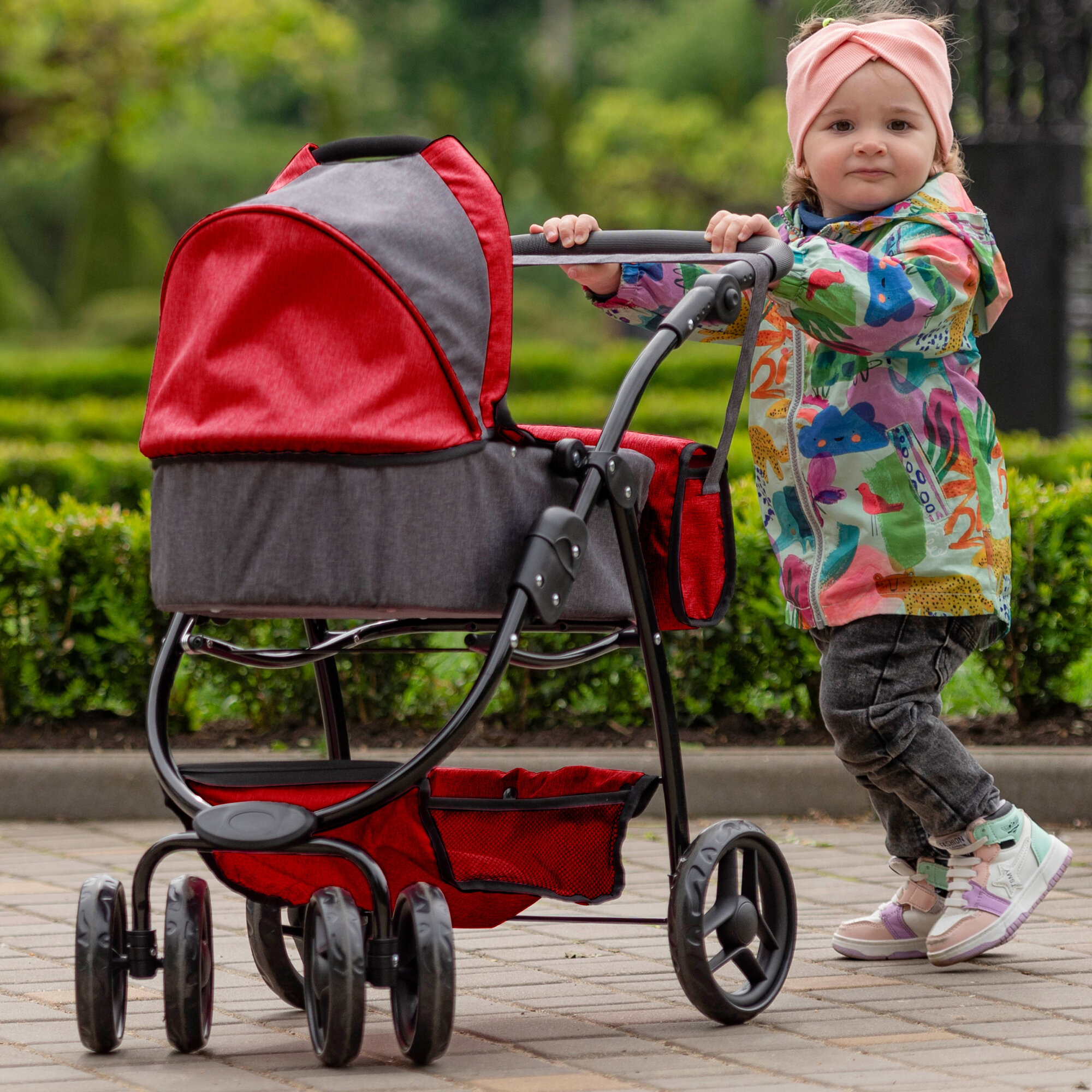 Конструкция поддерживает кукол высотой до 55 см благодаря адаптированным габаритам: