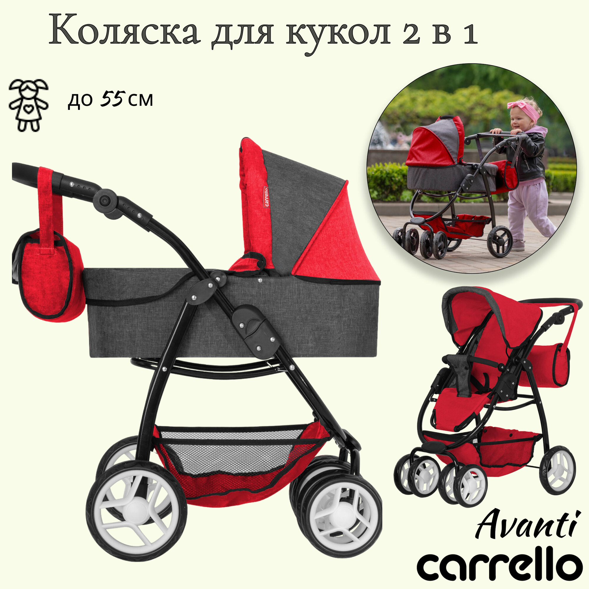 Коляска-трансформер Carrello Avanti реализует два режима использования через простой механизм трансформации: