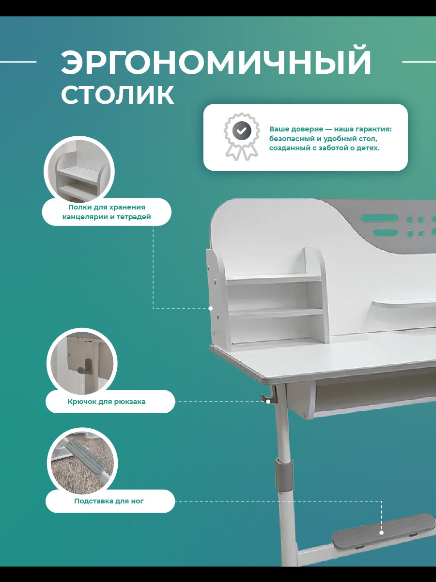 - Площадь столешницы 70×55 см с противоударным покрытием