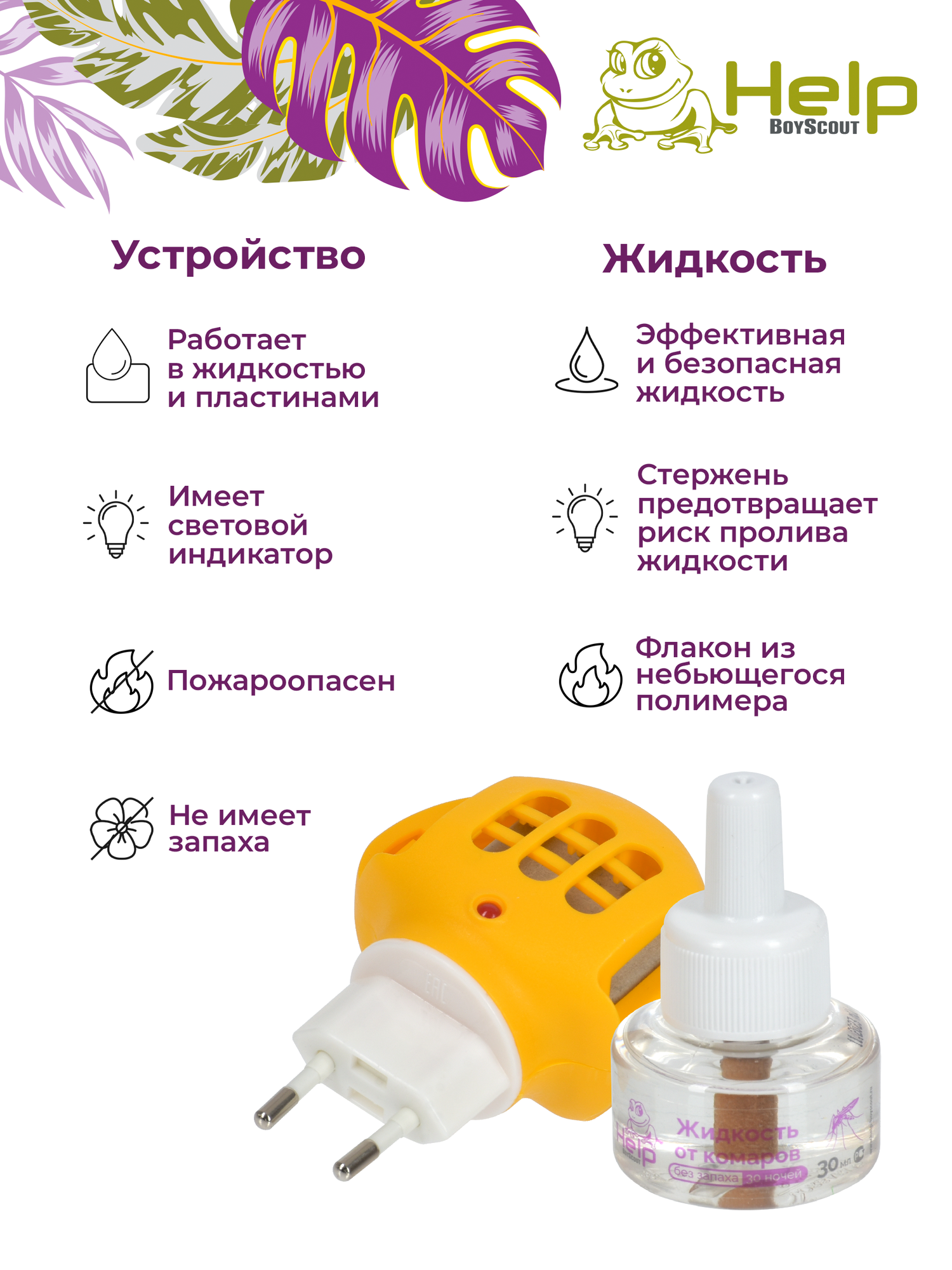 Фумигатор Help Boyscout гарантирует защиту 12 м² от комаров, мошек и мух благодаря оптимальной концентрации праллетрина (0,8% в составе жидкости). В отличие от аналогов вроде Mosquitall, система нагрева обеспечивает равномерное испарение без перегрева – в лабораторных тестах устройство показало стабильную температуру плавления 135°C при непрерывной 30-дневной работе.