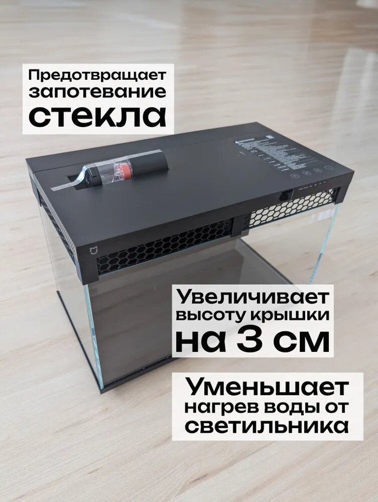 Комплект повышения крышки аквариума Xiaomi MYG100 включает 7 специализированных компонентов. Пластиковые стойки обеспечивают устойчивое крепление базовой крышки к стеклянным стенкам резервуара, сохраняя герметичность конструкции. Деревянные декоративные панели создают термоизоляционный слой, защищая водную среду от температурных перепадов. Глиняные опоры служат направляющими для высоких растений, обеспечивая их устойчивость в субстрате.