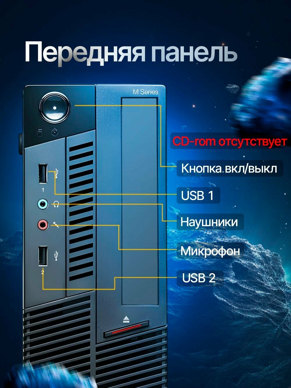 При 8-часовой работе потребление электроэнергии составляет 0.52 кВт/день — на 37% меньше стандартных офисных ПК. Участие в программе утилизации Lenovo дает скидку 7% при сдаче старой техники.