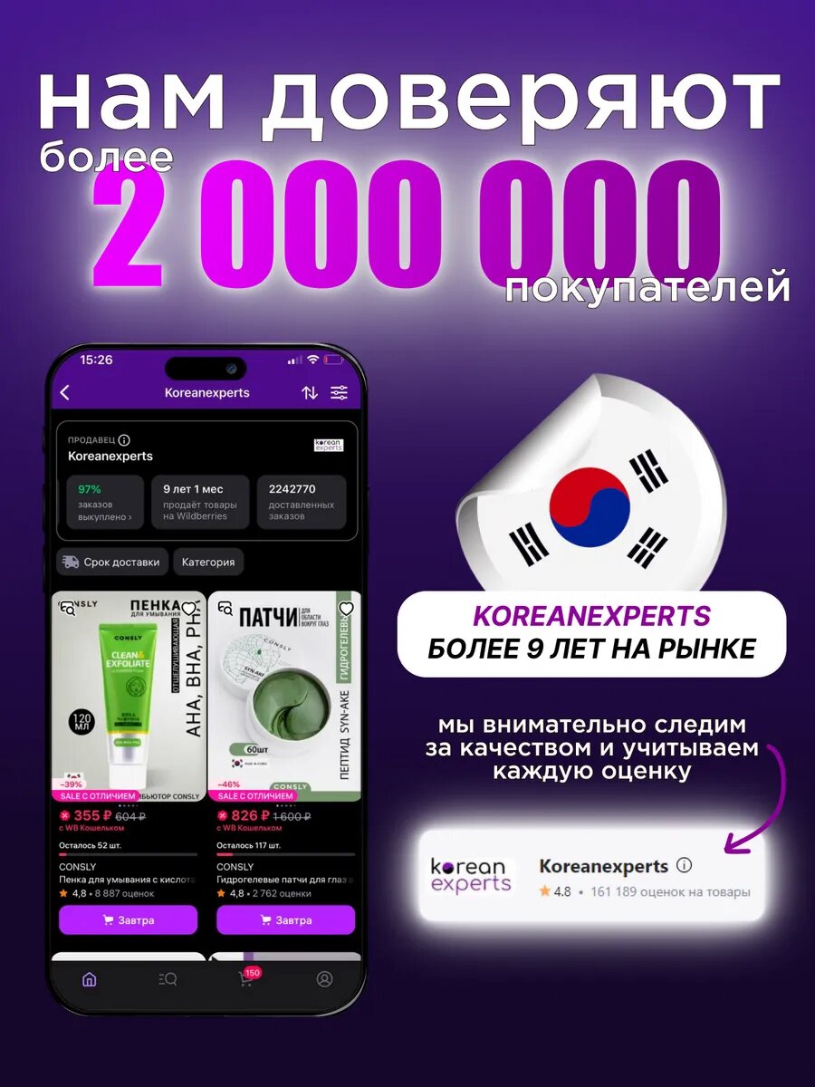 Актуальные акции: «Ночные скидки» с 23:00 до 6:00 (-15%), промокод FIRST5 для нового покупателя. Наборы с доставкой из Кореи доступны под заказ за 3-5 рабочих дней через партнерские DHL лоты.