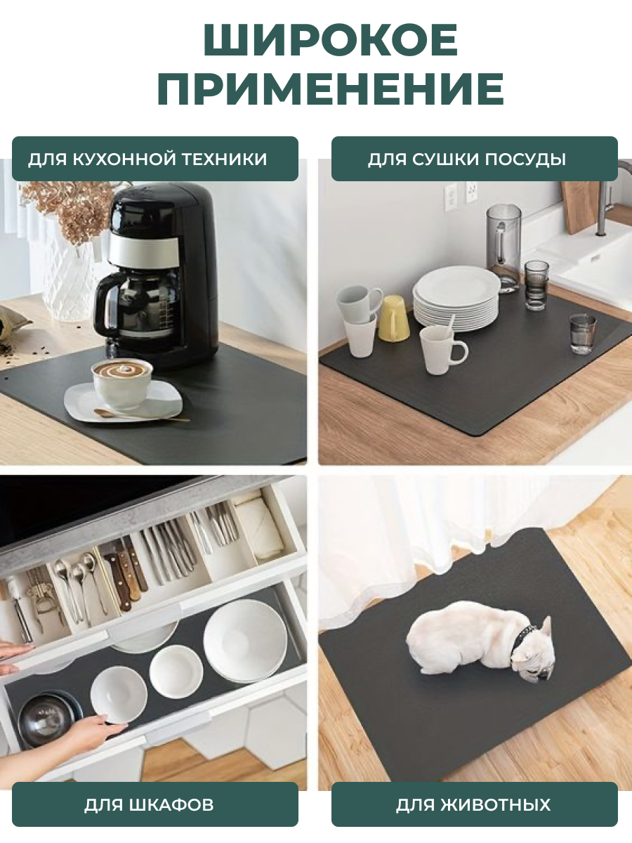 | Диаметр посуды | Рекомендуемый размер коврика | Срок сушки |