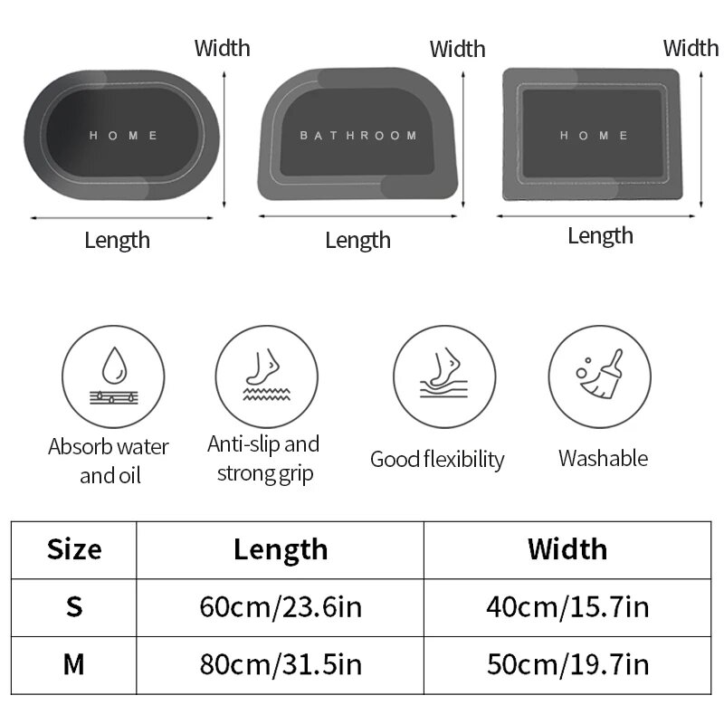 Π‘ΡΠ°Π½Π΄Π°ΡΡΠ½ΡΠΉ ΡΠ°Π·ΠΌΠ΅Ρ 60x40 ΡΠΌ ΠΏΡΠΈ ΡΠΎΠ»ΡΠΈΠ½Π΅ 1,5 ΡΠΌ ΠΎΠΏΡΠΈΠΌΠ°Π»Π΅Π½ Π΄Π»Ρ ΡΡΡΠ°Π½ΠΎΠ²ΠΊΠΈ ΠΏΠ΅ΡΠ΅Π΄ Π²Π°Π½Π½ΠΎΠΉ ΠΈΠ»ΠΈ Π²Ρ ΠΎΠ΄Π½ΠΎΠΉ Π΄Π²Π΅ΡΡΡ. ΠΠΈΠ°ΡΠΎΠΌΠΈΡΠΎΠ²Π°Ρ ΠΊΡΠΎΡΠΊΠ° Π² ΡΠΎΡΡΠ°Π²Π΅ ΠΎΡΠ½ΠΎΠ²Π°Π½ΠΈΡ ΠΎΠ±Π΅ΡΠΏΠ΅ΡΠΈΠ²Π°Π΅Ρ ΠΏΠΎΠ³Π»ΠΎΡΠ΅Π½ΠΈΠ΅ Π΄ΠΎ 200 ΠΌΠ» Π²ΠΎΠ΄Ρ Π½Π° ΠΊΠ²Π°Π΄ΡΠ°ΡΠ½ΡΠΉ ΠΌΠ΅ΡΡ ΠΏΠΎΠ²Π΅ΡΡ Π½ΠΎΡΡΠΈ. ΠΠ°Π±ΠΎΡΠ°ΡΠΎΡΠ½ΡΠ΅ ΡΠ΅ΡΡΡ (ΠΏΡΠΎΡΠΎΠΊΠΎΠ» βXMT-2023) ΠΏΠΎΠ΄ΡΠ²Π΅ΡΠΆΠ΄Π°ΡΡ ΡΠΊΠΎΡΠΎΡΡΡ ΠΈΡΠΏΠ°ΡΠ΅Π½ΠΈΡ Π²Π»Π°Π³ΠΈ β ΠΏΠΎΠ»Π½ΠΎΠ΅ Π²ΡΡΡΡ Π°Π½ΠΈΠ΅ Π·Π° 2 ΡΠ°ΡΠ° ΠΏΡΠΈ Π²Π»Π°ΠΆΠ½ΠΎΡΡΠΈ 60%.