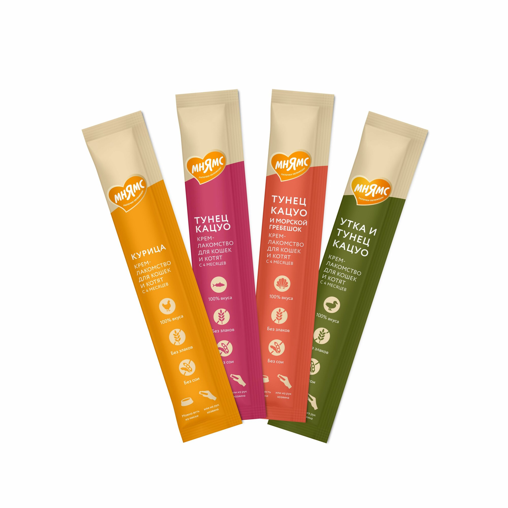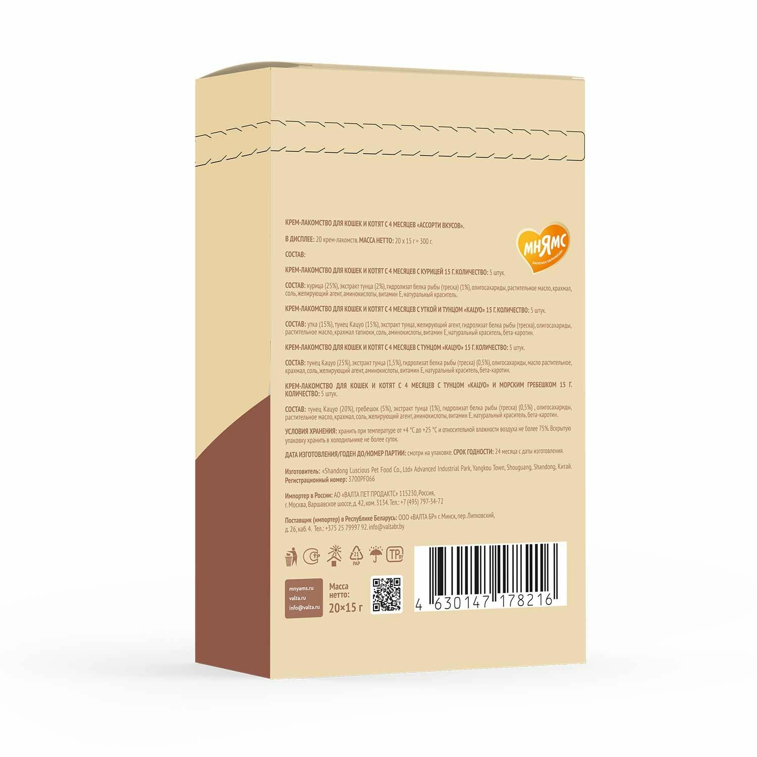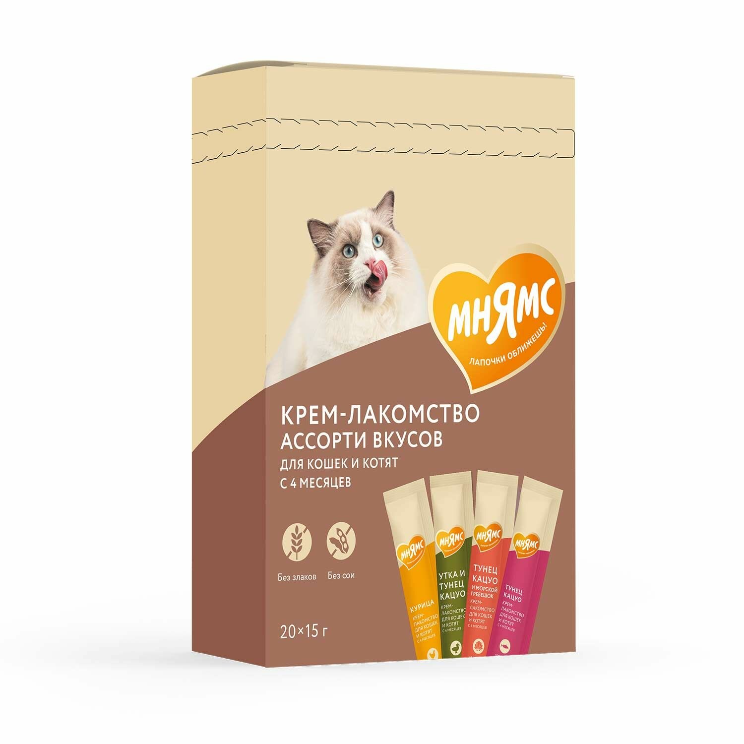Крем-лакомство Мнямс для кошек и котят содержит 92% мяса и бульона в составе – это вдвое больше, чем аналоги Sheba Creamy. В ассорти-наборе представлены три вкуса: