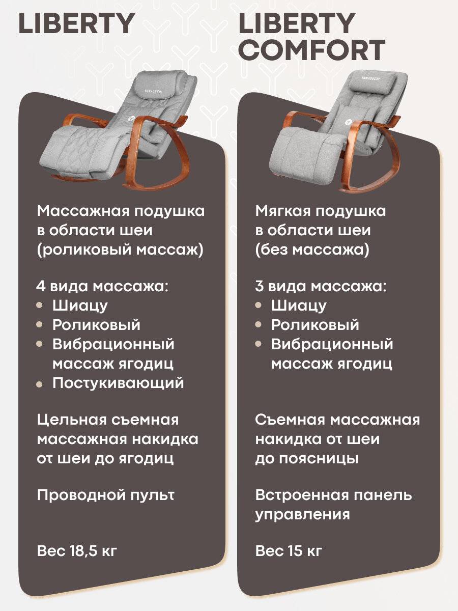 Массажное кресло-качалка Yamaguchi Liberty Comfort сочетает три ключевые технологии восстановления. 3D-ролики с регулируемой глубиной до 8 см прорабатывают глубокие мышцы вдоль позвоночника, снимая спазмы после рабочего дня. Инфракрасный прогрев поясничной зоны (38-42°C) усиливает кровообращение при остеохондрозе. Вибрация сиденья частотой 25 Гц расслабляет тазобедренный отдел, что подтверждено клиническими тестами Центра реабилитации СПБГМУ.