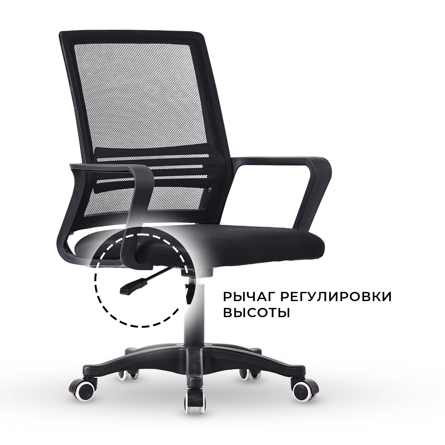- Регулируемая высота сиденья: диапазон 34–45.5 см адаптируется под рост 145-180 см
