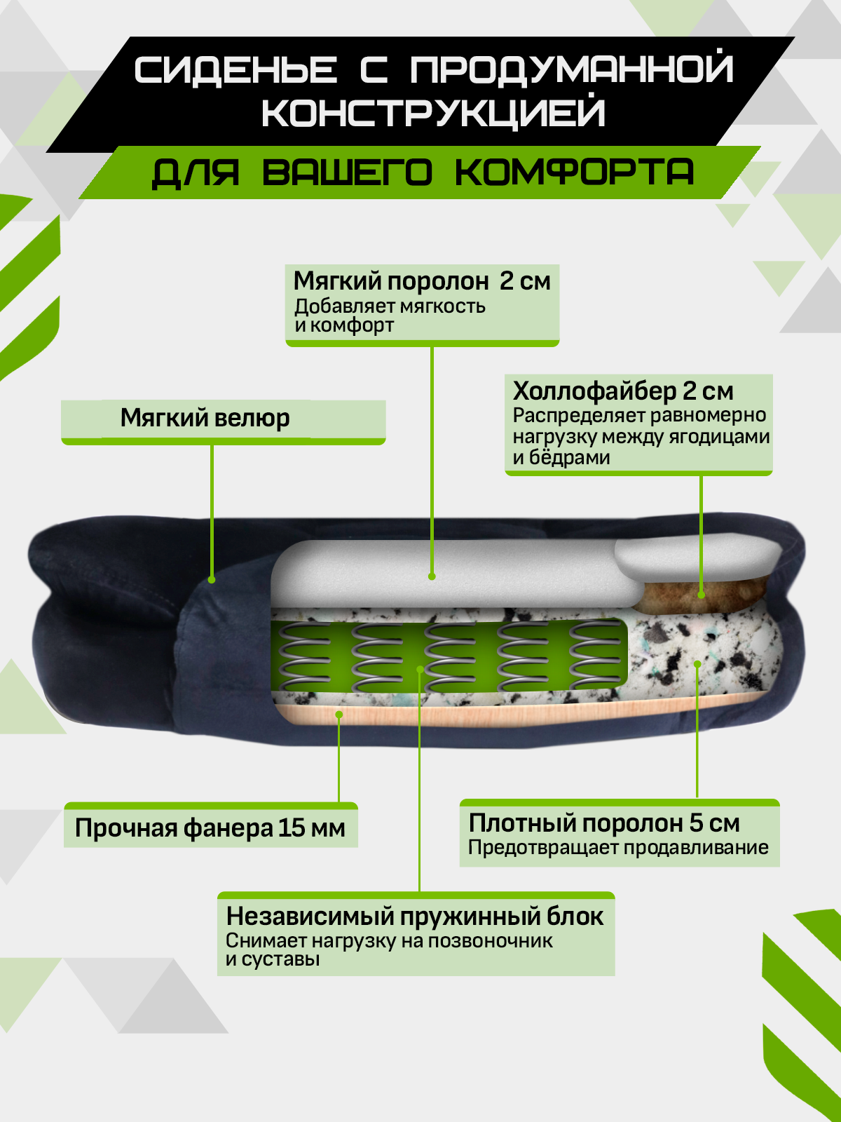 - Вентиляция: Перфорированный слой под велюром циркулирует воздух