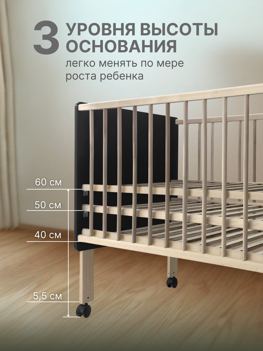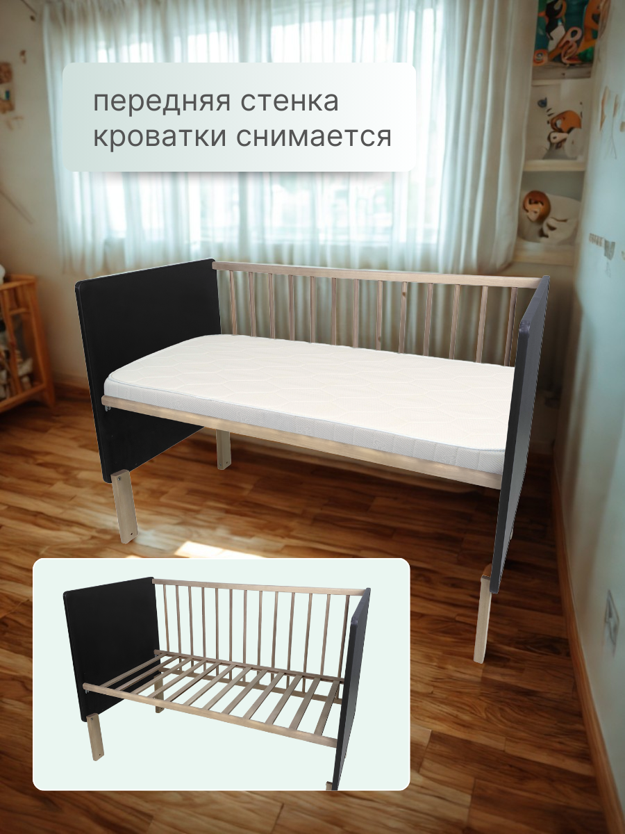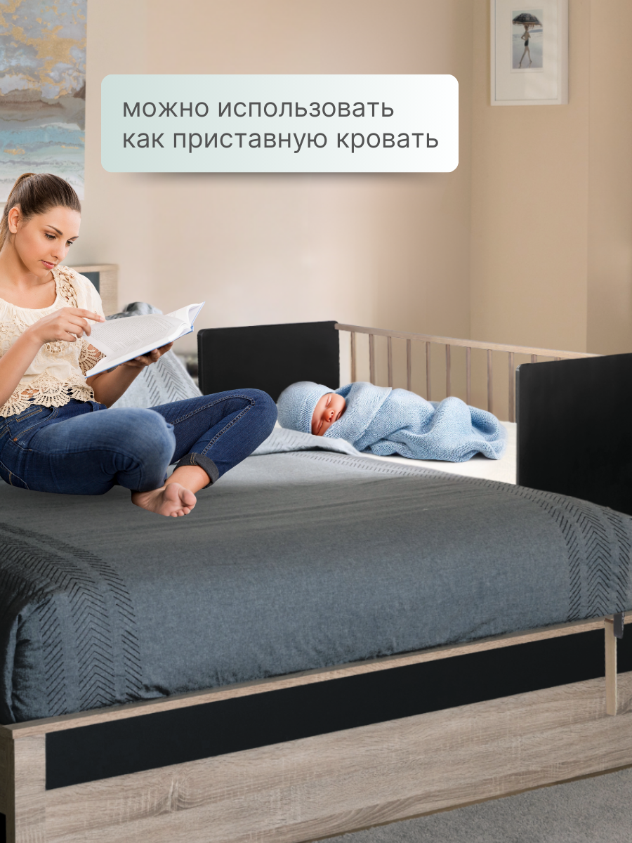 Съёмная боковина PEPPI позволяет приставить кровать к родительской – технология Side Sleeping рекомендована педиатрами до 6 месяцев. При демонтаже используйте заглушки из комплекта для защиты торцов ДСП.