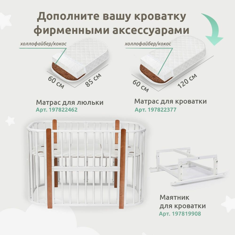 Бесплатная доставка осуществляется двумя блоками (общий вес 32,6 кг) с гарантией сохранности угловых элементов. При покупке комплекта с матрасом Cocomat Baby Air – скидка 25% на постельное бельё. Программа trade-in предусматривает вычет 3 000 рублей при сдаче старой кроватки любого бренда – специалисты произведут бесплатный демонтаж.