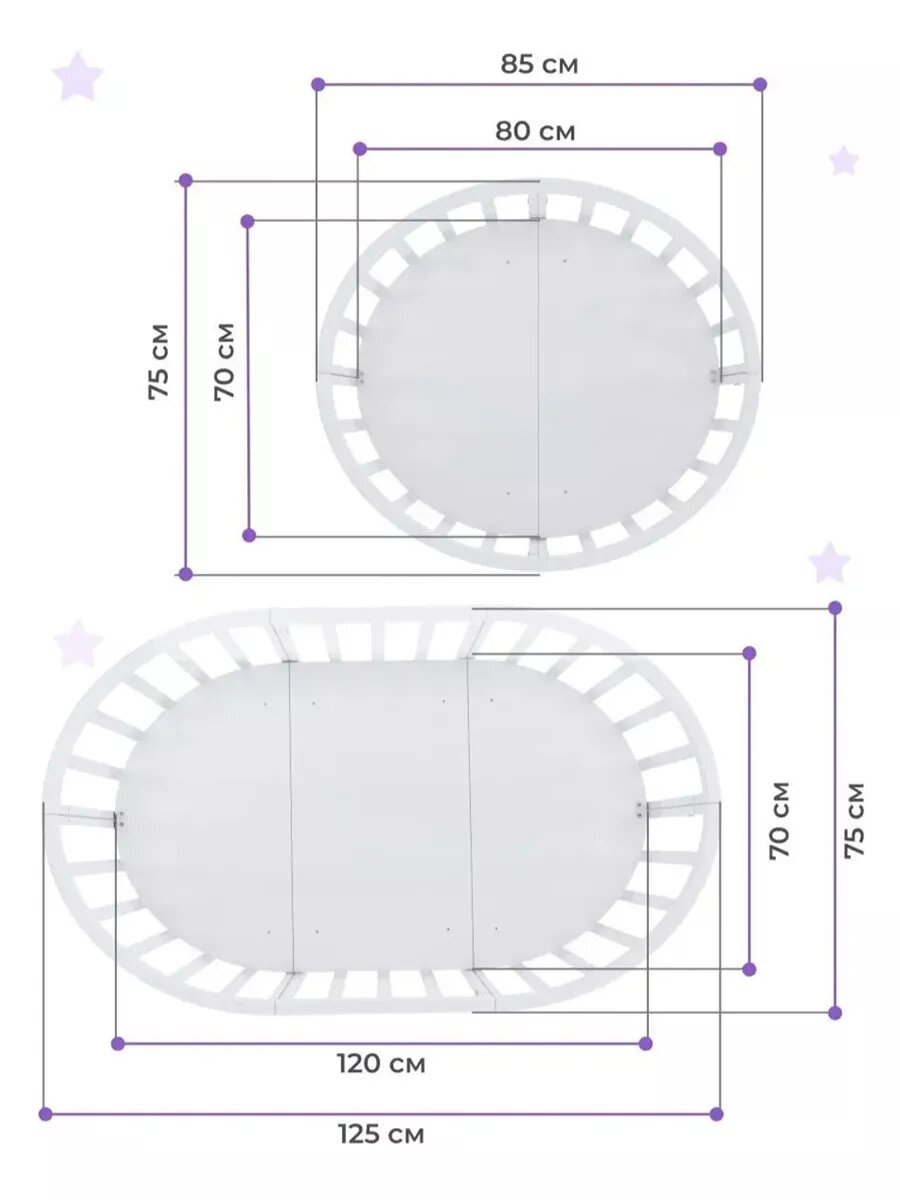 - Габариты спальной зоны – 70×120 см при компактном диаметре основания 130 см