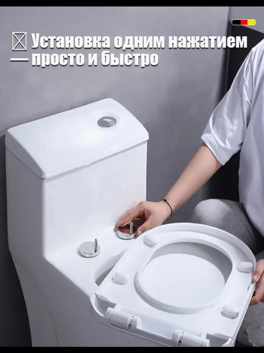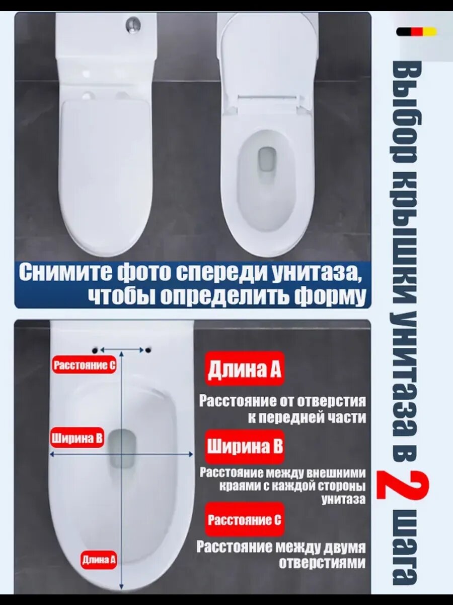 - Совместимость: овальные и круглые унитазы длиной 42-53 см