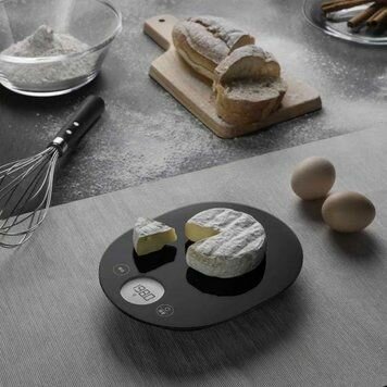 Плоская платформа позволяет взвешивать габаритные продукты и посуду диаметром до 28 см, что невозможно при использовании съёмных чаш. Для жидкостей используйте любую ёмкость с функцией автоматической тарокомпенсации: