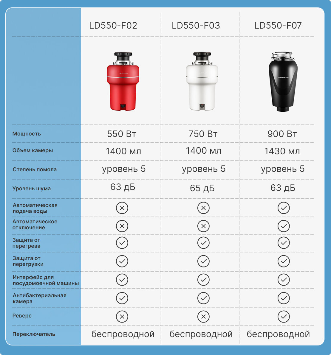 | Параметр | Без измельчителя | С Xiaomi LD550-F02 |