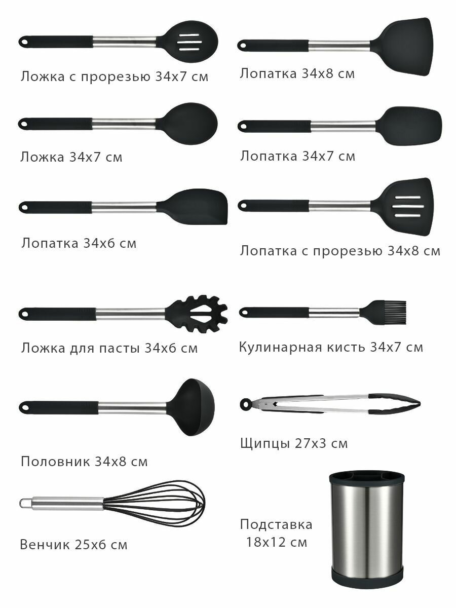 Набор 12 предметов включает функциональные инструменты для каждого этапа готовки: