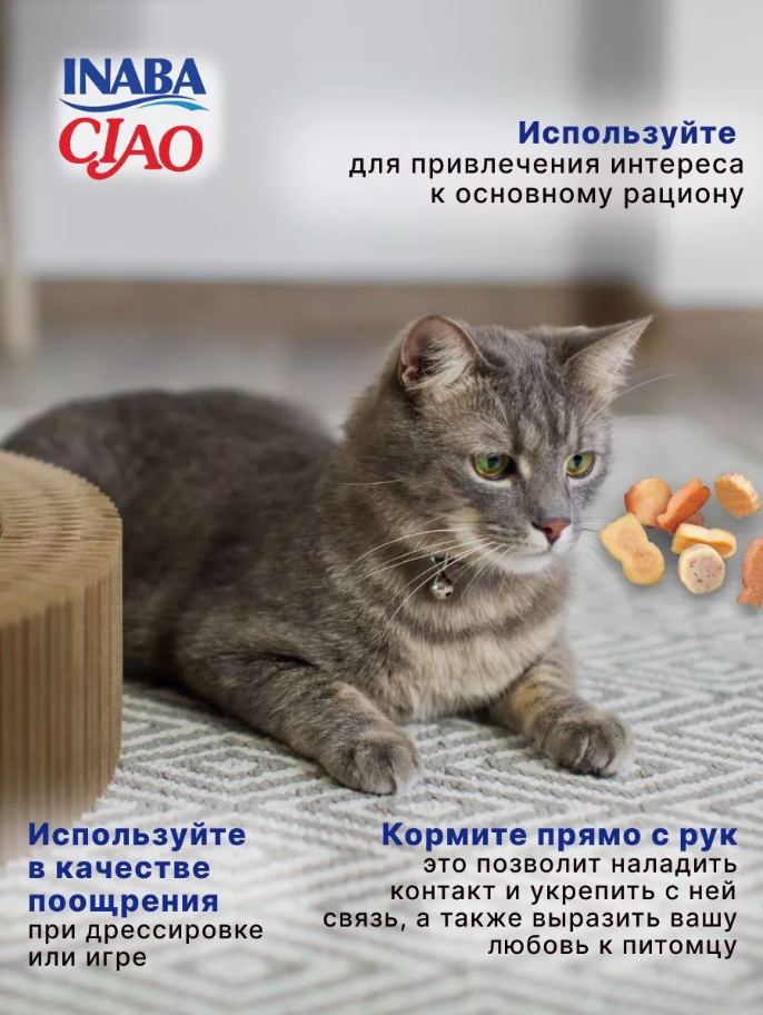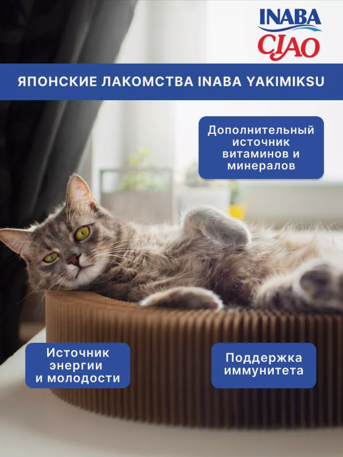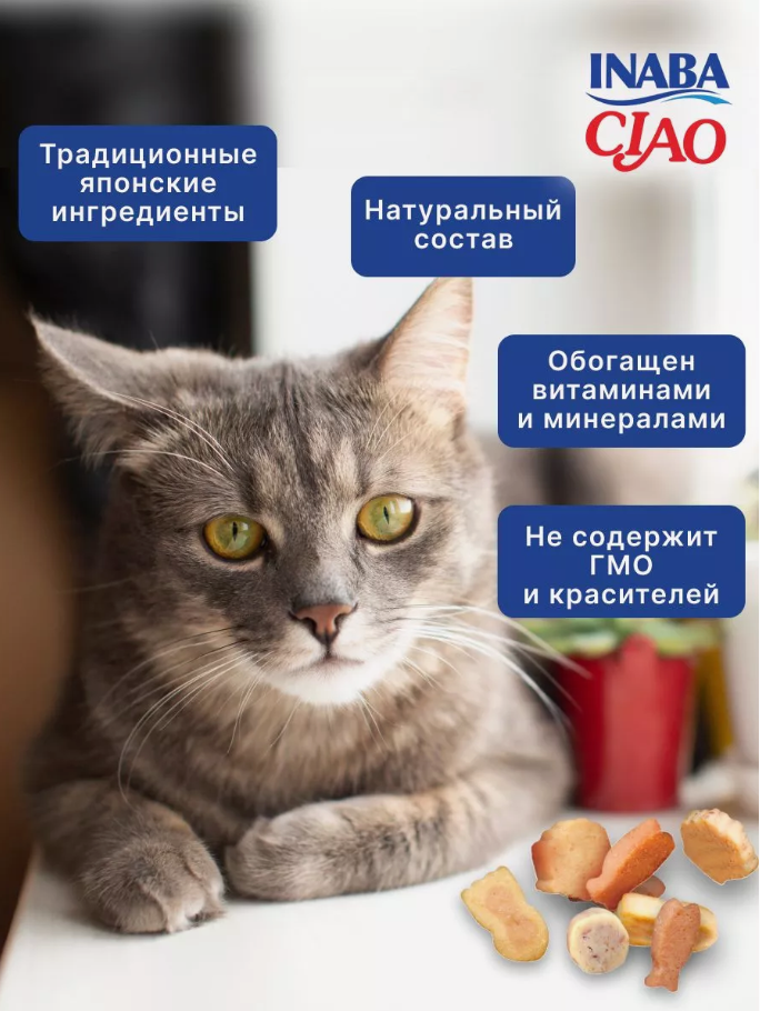 Лакомства Inaba Yakimiksu созданы по японской рецептуре с использованием ингредиентов для человеческого питания. Основу продукта составляют: