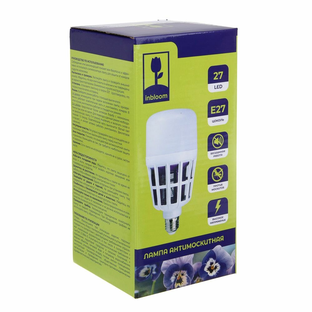 Светодиодная матрица из 27 LED элементов генерирует УФ-спектр 280-350 нм, максимально привлекательный для комаров и мошек. Энергопотребление 4Вт обеспечивает экономию 85% электроэнергии по сравнению с инсектицидными лампами накаливания.