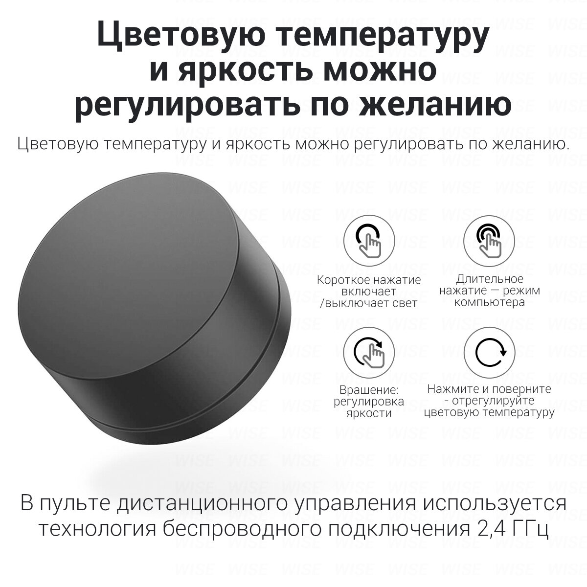 - Беспроводной контроллер сенсорного типа — регулировка яркости (1-100%), цветовой температуры (теплый/нейтральный/холодный свет)