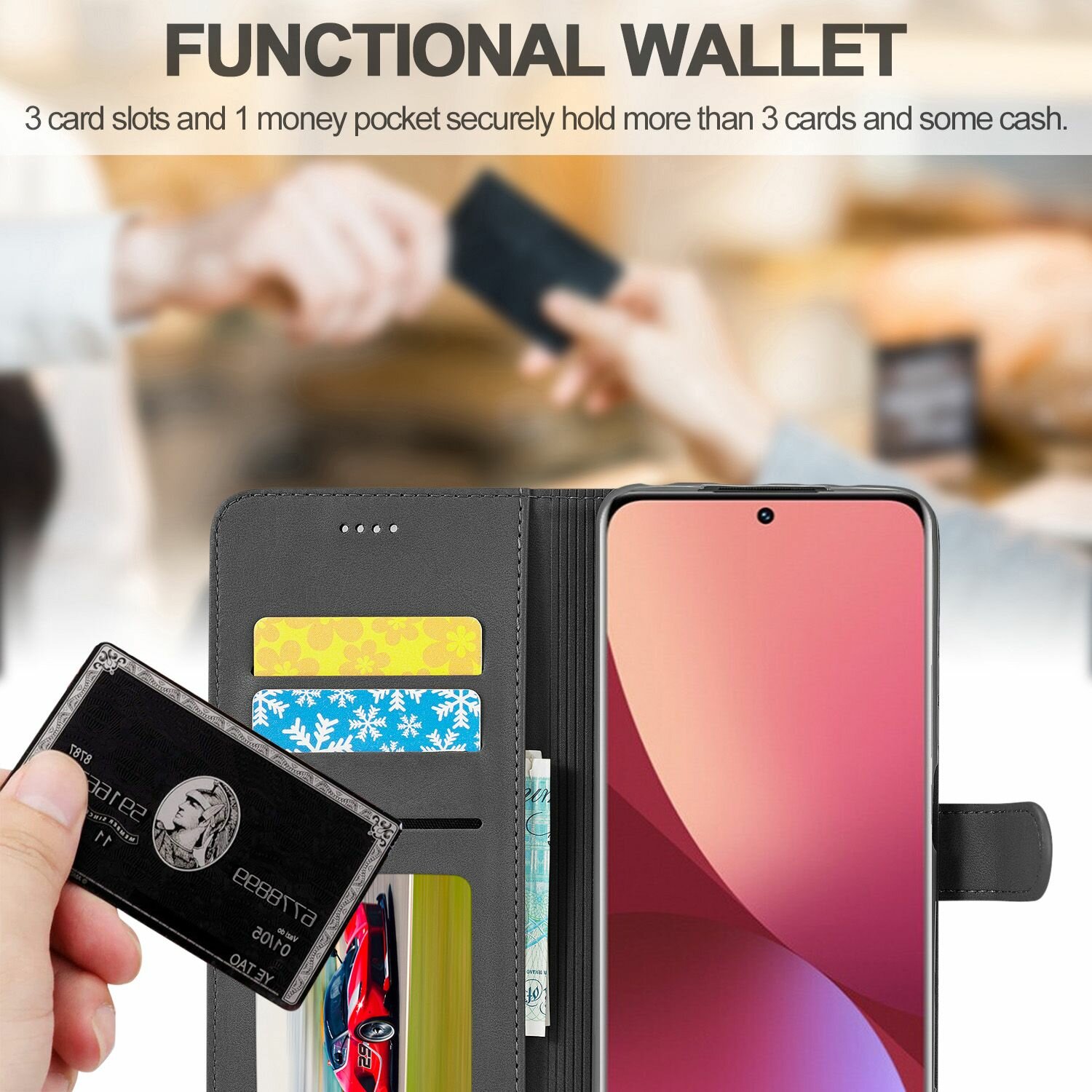 - Размещать до 3 пластиковых карт стандартного формата без деформации