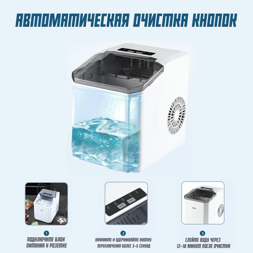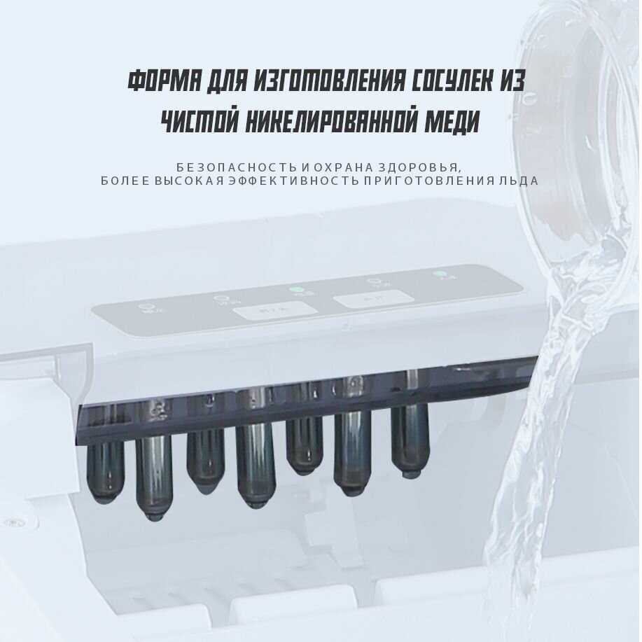Производительность 12 кг льда в сутки решает проблему регулярного пополнения запасов для вечеринок. При объёме резервуара 1.3 л прибор генерирует партии по 9 кубиков за 6-8 минут благодаря компрессорной системе охлаждения.