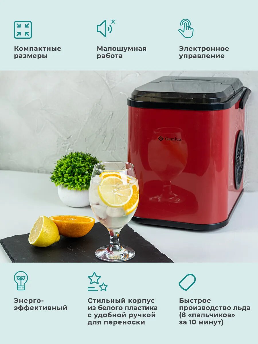 Корпус GL-IM99 имеет стандартные крепления RIC для интеграции в стойку с шейкерами и кофемашинами. Красная и чёрная версии одинаково хорошо комбинируются с техникой Gefest или Maunfeld. Для подключения через систему Smart Home потребуется дополнительный модуль Gemlux Smart Ice (продаётся отдельно).